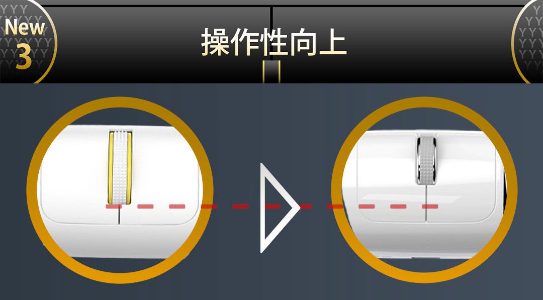 マウスの重要な機能でもあるスクロールホイールを小型化し、スクロール操作がより軽く快適に行えるようになりました。