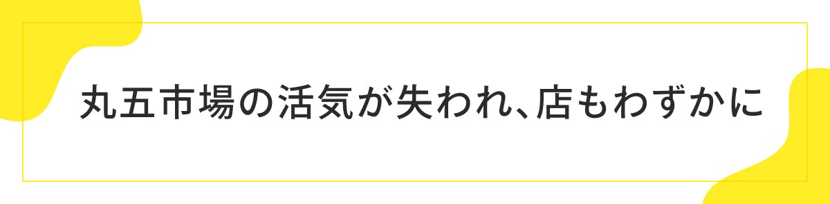 丸五市場は1階は店舗・2階が住居と知った一体型の建物が軒を連ねており、市場の人々の職場でもあり住居でもあります。そのため市場に活気がなくなりつつあるとはいえ市場自体を閉場し取り壊すわけにもいかず、今のような空きスペースが多く並ぶ場所のまま存在しているのが現状です。