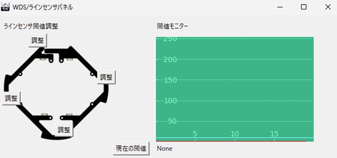 ロボットがボールを追跡中、誤作動したときにその原因をさぐるにはその時のロボットの状況を探ることが重要です。私たちのチームでは、ワイヤレスでロボットのモーターの出力や、センサの値、推測したボールの方向などを取得できるシステムの開発を行いました。ワイヤレス通信の部分には既製品の通信モジュールを使用して、ロボットの状況を映し出したり、ロボットに命令を送ったりする部分には自作のソフトウェアを導入しました。私たちのロボットに特化した独自のソフトウェアにより、スムーズな状況把握やロボットの調整につながりました。