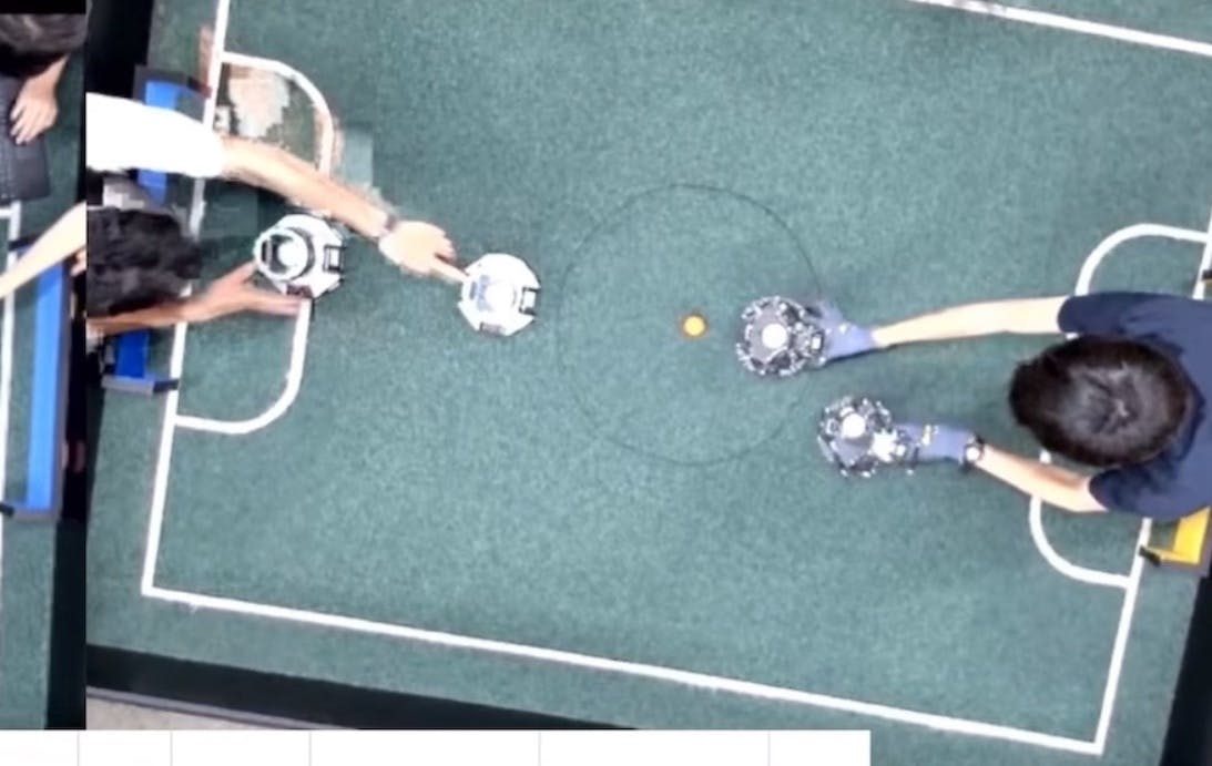 2025/06/28 12:43日本の公式コートでの最後の調整6月22日 滋賀県にある立命館守山中学・高等学校で「リツモリカップ」が開催されました。この大会は選手同士の技術交流などを目的として定期的に開催されており、昨年度は3回参加させていただきました。私たちチームにとって日本の公式大会で使用されるコートで調整を行えるのはこれが最後のチャンスとなるため、はるばる東京、福岡から訪れて参加しました。1試合目からロボットの調整に苦戦限られた調整時間の中で大会会場のコートの色やボールの色など、ロボットにセッティングする作業に時間がかかり、あまり調整できてない中、安定的な動きの相手チームに点数を決められ負けてしまいました(世界大会では前日1日が調整日となっています)。新しい機能が活躍した2試合目2試合目では、昨年の世界大会で優勝した日本のチーム「Crescent(Re)」と対戦しました。1試合目から十分時間がたっていたことから、十分に調整した状態で臨みました。前半、相手のテクニカルで隙の無い動きになかなか対抗できず点数を決められてしまいました。「ゴールを向いてシュート!」得点力を上げる戦法でゴールを奪う!後半、最初は圧倒的な強さを見せる相手に点数を決められながらも、途中でボールを奪い返しゴールを決めました。↑相手ロボットからボールを奪いゴール(左)へ向かう様子そして、試合の一番最後に、この日、動作を確認するために用意したプログラムが機能しました。関東大会、日本大会と実現しようと調整してきたが実装できなかったプログラム「ゴールを認識してシュートするプログラム」です。上の画像は、試合開始直後、互いのロボットがオレンジ色のボールめがけて突進した後、ボールは右に転がり、そのボールを奪ってロボットがゴールの左端の空きスペースを認識して、そこにめがけてキックしている様子です。キックしたボールはゴールに入らず、壁に当たってしまいましたが、再びそのボールをゴールに向けてキックしてゴールをきめました。ただ一定方向を向いてボールに突進する方法ではゴールを決めることはできなかったこの場面、ゴールの場所を知ることが、点数を決めるうえでどれほど重要なのか知る一場面となりました。プレゼンで交流この大会で試合以外に行われるのがプレゼン会です。この大会に参加する際はほぼプレゼンを行っています。今回は、私たちのチームの1つの特徴である遠距離開発、そして私たちのチームが新たに取り組んだカメラの景色からコートの形状を把握する手法、ワイヤレスでデバッグを行うシステムについて紹介しました。今大会の反省今回の大会では、ロボットの調整の部分で課題が浮き彫りとなりました。チームメンバーの人数が少ない中で、いかに役割分担して、その会場に適合した状態に仕上げるかというのが、試合を有利に進めるための鍵となると思います。世界大会では、互いに事前に調整すべき項目を挙げ、チャックリストのようにし、互いに効率よく調整が進むよう役割分担を行おうと思います。そしてプログラムの面では、ゴールを認識するプログラムがうまく動作していることを確認できました。その一方で、ボールが見えなくなった時の動きや、ロボットのコート上での役割分担(1機が攻撃にまわり、1機が守備にまわるなど)のプログラムの詰めが甘いことが浮き彫りとなりました。出発までの2、3週間、おもにその点に重点を置き、調整を進めようと思っています。世界大会まで残り2、3週間、そして最後のロボカップジュニアの選手としての時間を大切にしていきながら、精一杯頑張りたいと思います。応援よろしくお願いいたします! もっと見る
