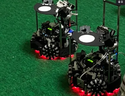 2025/06/28 12:43日本の公式コートでの最後の調整6月22日 滋賀県にある立命館守山中学・高等学校で「リツモリカップ」が開催されました。この大会は選手同士の技術交流などを目的として定期的に開催されており、昨年度は3回参加させていただきました。私たちチームにとって日本の公式大会で使用されるコートで調整を行えるのはこれが最後のチャンスとなるため、はるばる東京、福岡から訪れて参加しました。1試合目からロボットの調整に苦戦限られた調整時間の中で大会会場のコートの色やボールの色など、ロボットにセッティングする作業に時間がかかり、あまり調整できてない中、安定的な動きの相手チームに点数を決められ負けてしまいました(世界大会では前日1日が調整日となっています)。新しい機能が活躍した2試合目2試合目では、昨年の世界大会で優勝した日本のチーム「Crescent(Re)」と対戦しました。1試合目から十分時間がたっていたことから、十分に調整した状態で臨みました。前半、相手のテクニカルで隙の無い動きになかなか対抗できず点数を決められてしまいました。「ゴールを向いてシュート!」得点力を上げる戦法でゴールを奪う!後半、最初は圧倒的な強さを見せる相手に点数を決められながらも、途中でボールを奪い返しゴールを決めました。↑相手ロボットからボールを奪いゴール(左)へ向かう様子そして、試合の一番最後に、この日、動作を確認するために用意したプログラムが機能しました。関東大会、日本大会と実現しようと調整してきたが実装できなかったプログラム「ゴールを認識してシュートするプログラム」です。上の画像は、試合開始直後、互いのロボットがオレンジ色のボールめがけて突進した後、ボールは右に転がり、そのボールを奪ってロボットがゴールの左端の空きスペースを認識して、そこにめがけてキックしている様子です。キックしたボールはゴールに入らず、壁に当たってしまいましたが、再びそのボールをゴールに向けてキックしてゴールをきめました。ただ一定方向を向いてボールに突進する方法ではゴールを決めることはできなかったこの場面、ゴールの場所を知ることが、点数を決めるうえでどれほど重要なのか知る一場面となりました。プレゼンで交流この大会で試合以外に行われるのがプレゼン会です。この大会に参加する際はほぼプレゼンを行っています。今回は、私たちのチームの1つの特徴である遠距離開発、そして私たちのチームが新たに取り組んだカメラの景色からコートの形状を把握する手法、ワイヤレスでデバッグを行うシステムについて紹介しました。今大会の反省今回の大会では、ロボットの調整の部分で課題が浮き彫りとなりました。チームメンバーの人数が少ない中で、いかに役割分担して、その会場に適合した状態に仕上げるかというのが、試合を有利に進めるための鍵となると思います。世界大会では、互いに事前に調整すべき項目を挙げ、チャックリストのようにし、互いに効率よく調整が進むよう役割分担を行おうと思います。そしてプログラムの面では、ゴールを認識するプログラムがうまく動作していることを確認できました。その一方で、ボールが見えなくなった時の動きや、ロボットのコート上での役割分担(1機が攻撃にまわり、1機が守備にまわるなど)のプログラムの詰めが甘いことが浮き彫りとなりました。出発までの2、3週間、おもにその点に重点を置き、調整を進めようと思っています。世界大会まで残り2、3週間、そして最後のロボカップジュニアの選手としての時間を大切にしていきながら、精一杯頑張りたいと思います。応援よろしくお願いいたします! もっと見る