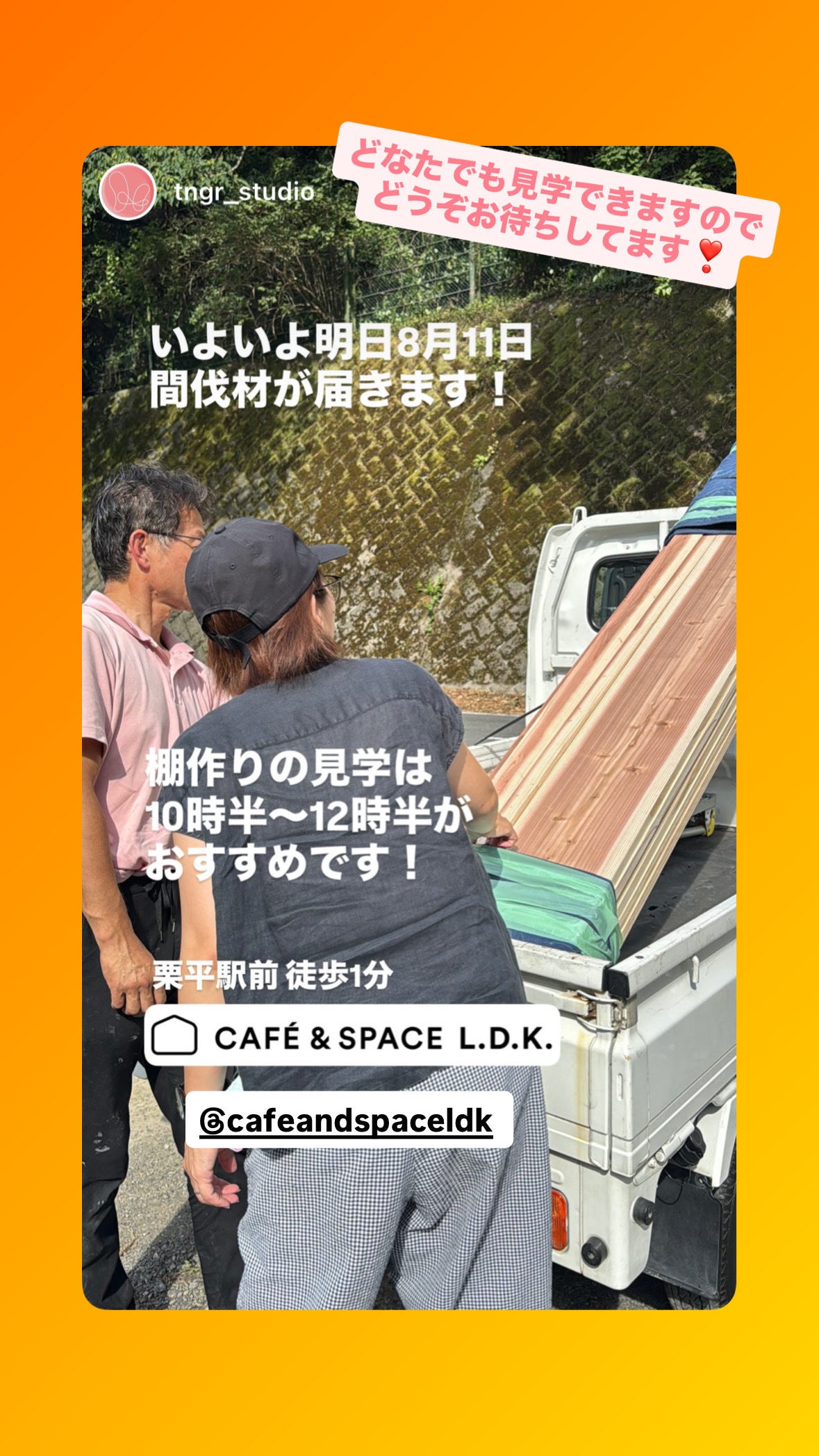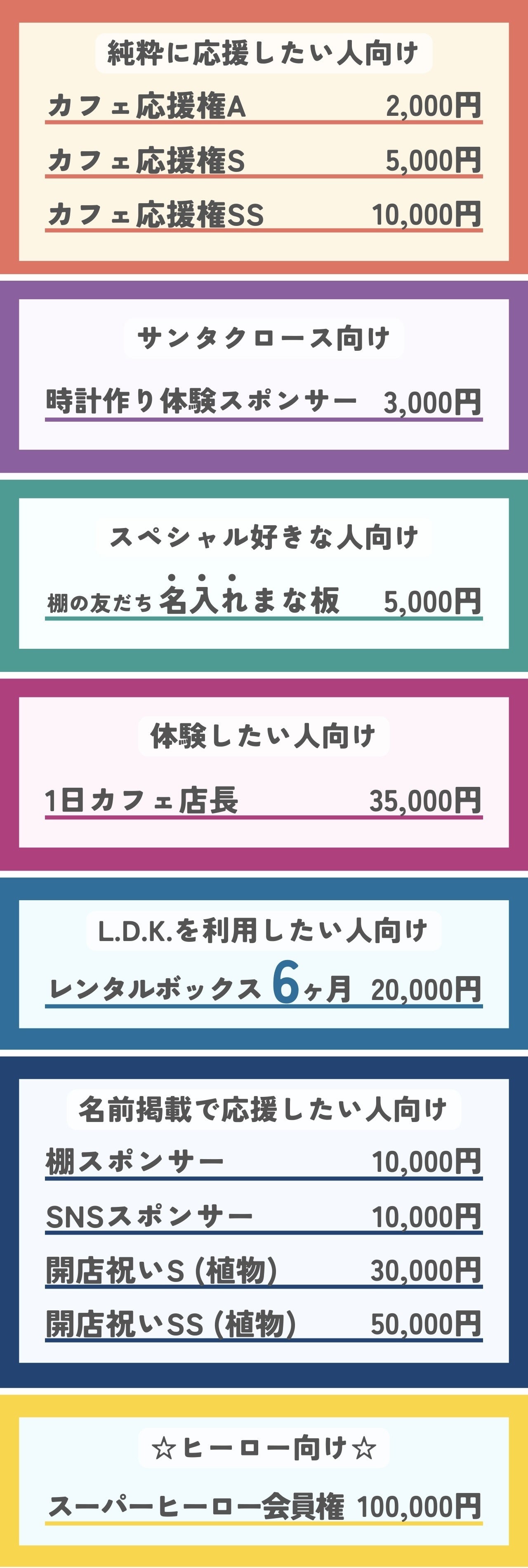 2025/08/11 19:31このたびは、温かいご支援をいただき、誠にありがとうございました。シェアなどの応援も嬉しかったです。 皆さまのお力添えのおかげで、目標金額986,000円を達成し、念願だったレンタルボックスの設置がいよいよ実現いたします! 【棚作り見学のお知らせ】そのレンタルボックス棚を実際に制作する様子を見学できる機会をご案内します。クラウドファンディングで実現した"モノづくりの瞬間"を、どうぞ見にいらしてください! 日時:2025年8月12日(火)9時半からカフェはオープンしておりますが、10時半〜12時半が見頃のようです。※8/12-8/14はカフェがお盆休みですが、8/12は、飲み物とスイーツのみの販売いたします。場所:CAFÉ&SPACE L.D.K. カフェの状況はInstagramをご確認ください。https://www.instagram.com/cafeandspaceldk/◎支援者の皆さまと直接お会いできるのを、スタッフ一同楽しみにしています。そして…8月23日(土)には、完成したレンタルボックスのお披露目パーティーを開催します!CAFÉ&SPACE L.D.Kの新しい一歩を、ぜひご一緒にお祝いしていただけたら嬉しいです。【お披露目パーティー概要】■日時:2025年8月23日(土) 18:30〜20:30(18:15受付)■場所:CAFÉ&SPACE L.D.K(店舗内)■内容:レンタルボックスのお披露目/交流タイム/ドリンク・軽食付き■特典:クラファン支援者さま限定特典あり(当日のお楽しみ!) ↓https://forms.gle/quvuzFcADFKNX7tN7これまでの歩みをともにしてくださった皆さまへ、感謝の気持ちを直接お伝えできる貴重な機会です。CAFÉ&SPACE L.D.Kの"これから"を、ぜひ一緒に見届けてください。スタッフ一同、心よりお待ちしております。 もっと見るCAFÉ&SPACE L.D.Kからの感謝を込めて|8/12棚づくり見学 & 8/23完成お披露目パーティーへご招待