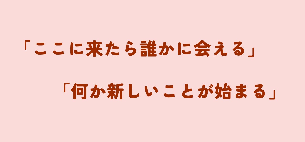 心地のいい居場所となるだけでなく、誰かと会えて、新しいことが始まるようなそんな場所を目指します。