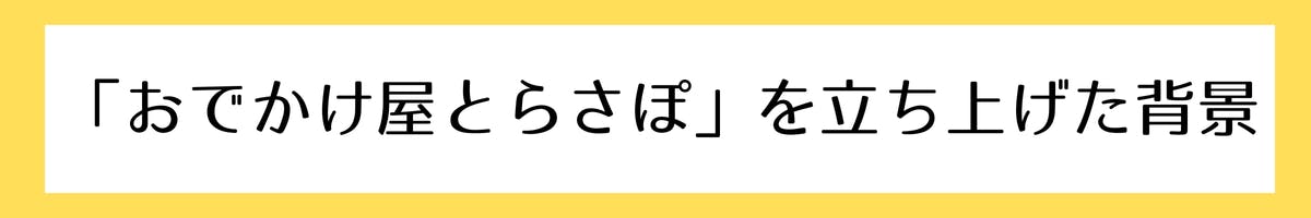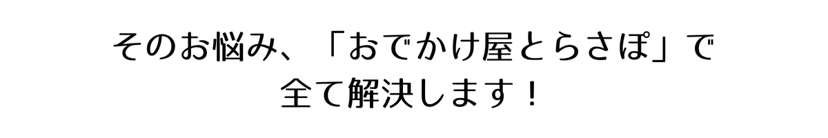 このような現状を知って、「すでに外出を諦めてしまっている方や、出かけたい気持ちはあるけど頼む相手がいないと悩んでいる方の外出サポートをしたい」という思いから誕生したのが「おでかけ屋とらさぽ」です!