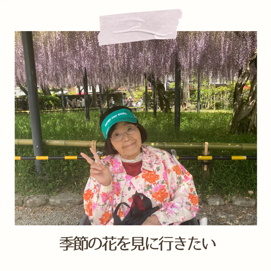 また、家族様が近くにおられたり、関係性が良好な方は外出したいと頼むことができますが、そうでない環境におられる方がいるということも様々なご家庭と関わる中で実感しました。