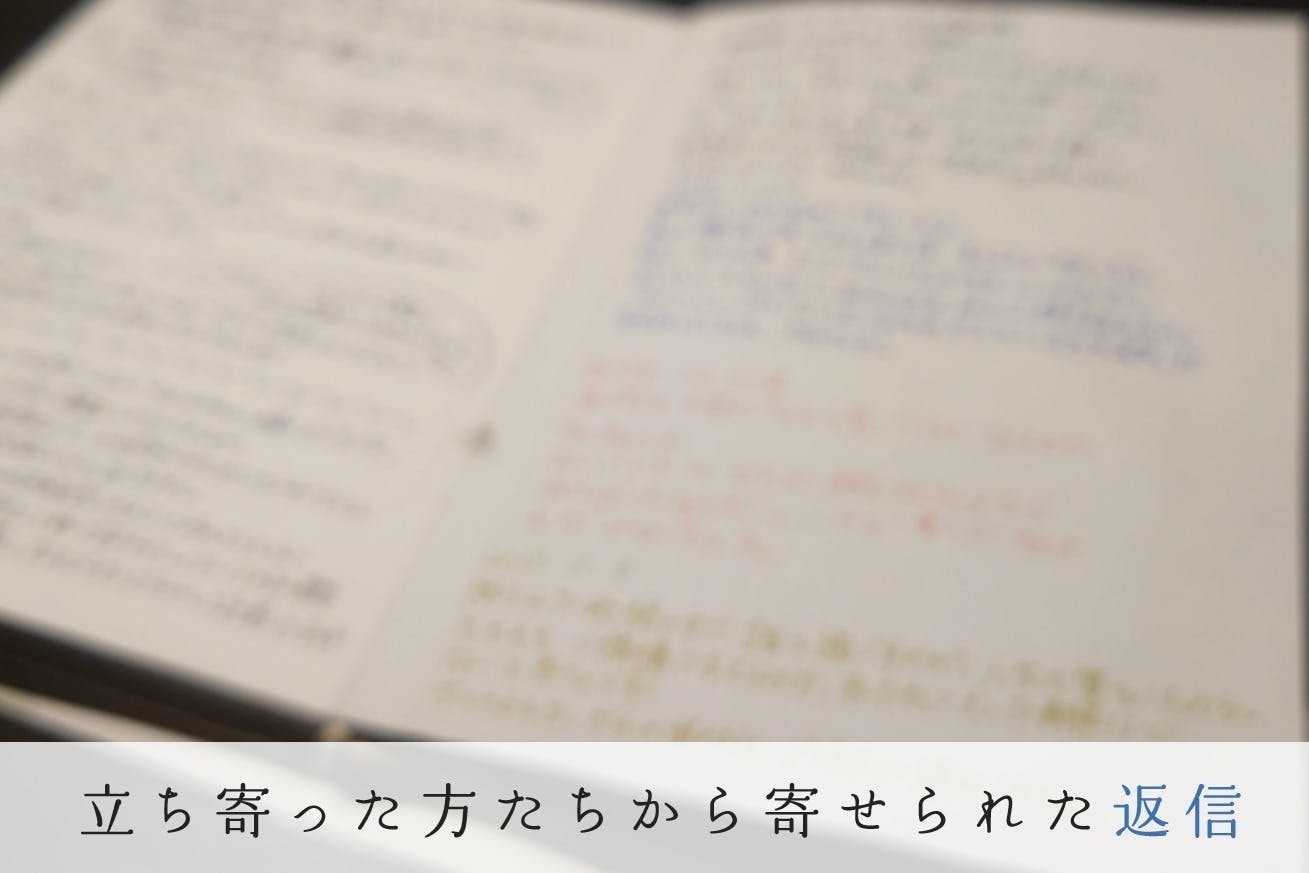 そのノートには来店者や参加者から自由に返事が書き込まれ、あなたはその返事を好きなタイミングで読みに来る(または郵送でやりとりする)ことができます。