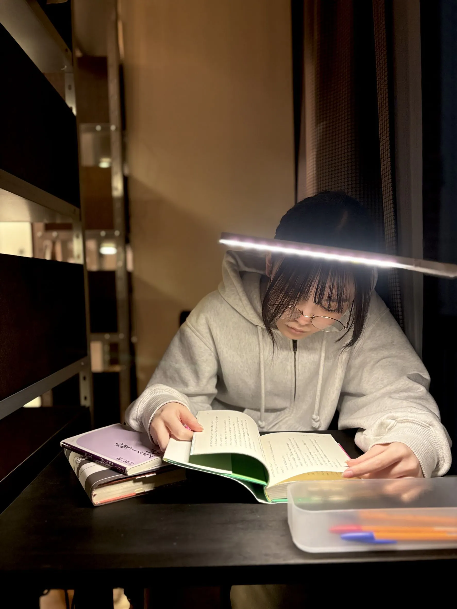 椅子と机が4席置かれていて、手紙を書いたり、本を読んだり、ただ窓からの景色を眺めてひと息ついたりすることもできます。もちろん、この席で交換日記を読んだり返事を書いたりもできます。