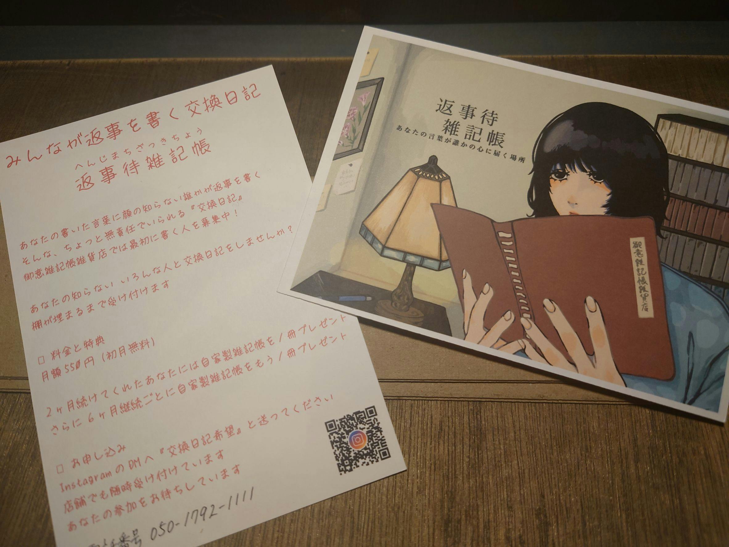 店内には返事待雑記帳の棚があり、そこに置かれている誰かの日記帳に、別の誰かがそっと返事を書き残します。書く人・読む人・返す人が、それぞれのペースでふらりと訪れ、互いの日常を共有する場所です。