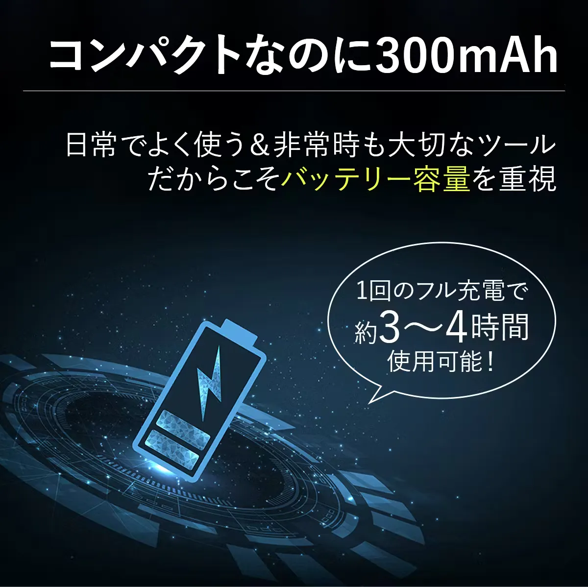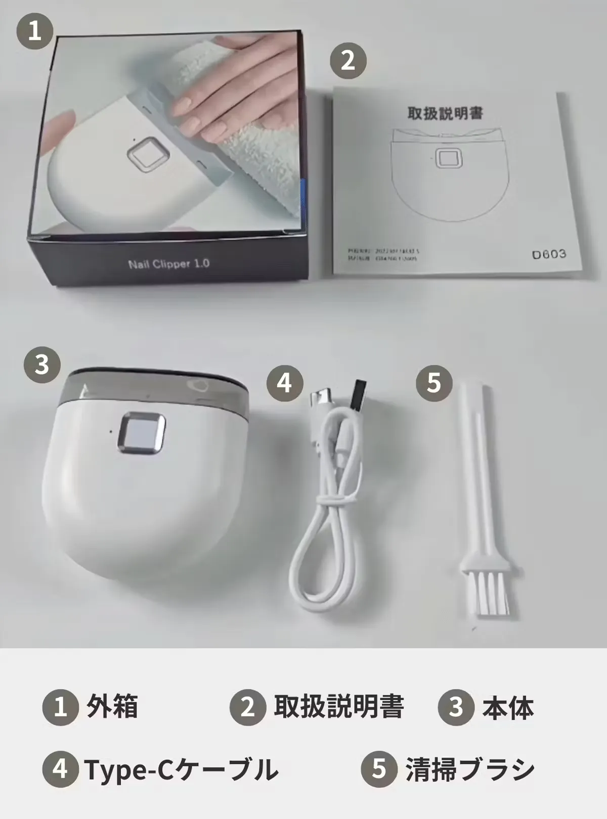 Nail Clipper 1.0は1回のフル充電で約3~4時間使用可能です!また、誤作動や消耗防止のために5分作動すると停止してクーリングする機能が備わっています。