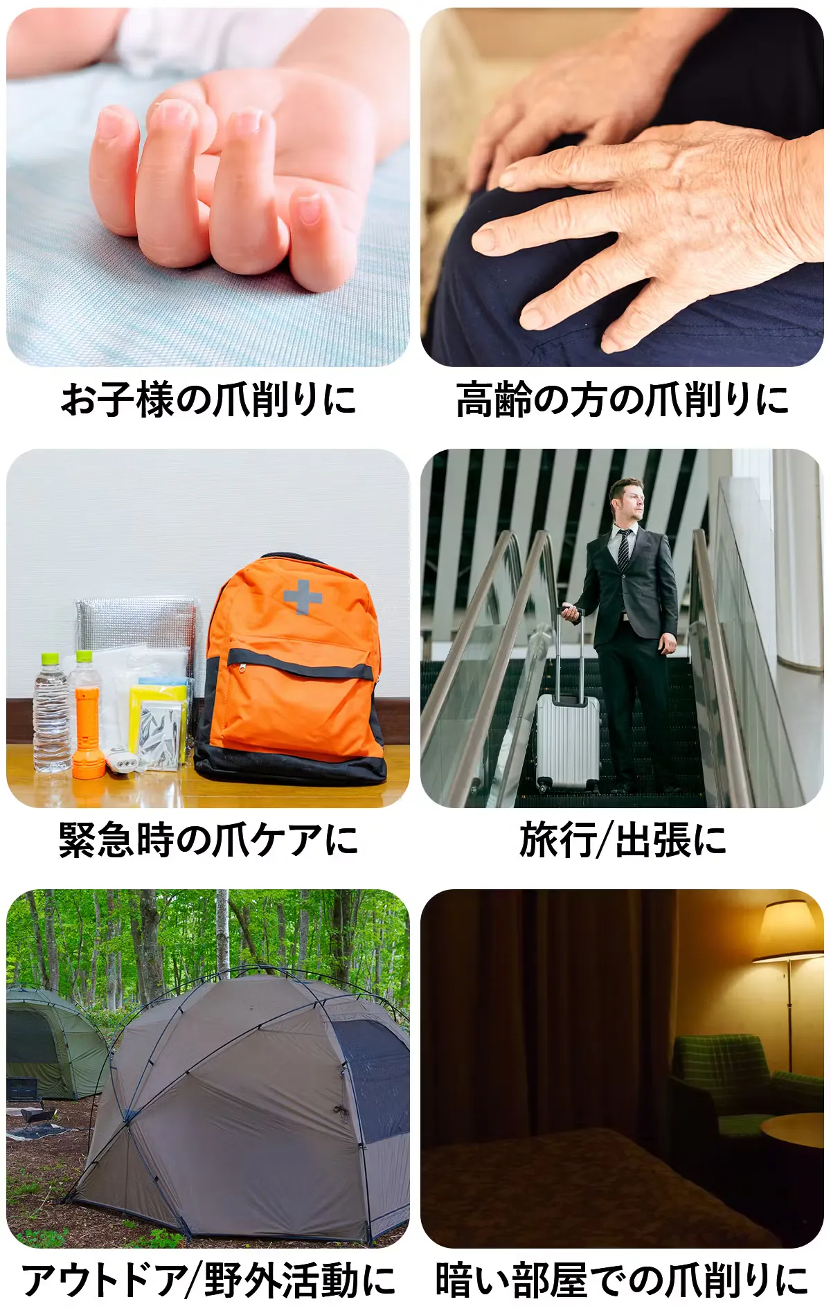 日常でも子供の爪切りで深爪をさせてしまう心配もなくなり、暗い場所でも危ないと思った時にすぐ爪を整えることができるので、危険な場面が減りました。同じ心配を抱えている皆様にも是非体感して欲しいと思い、起案させていただきます。