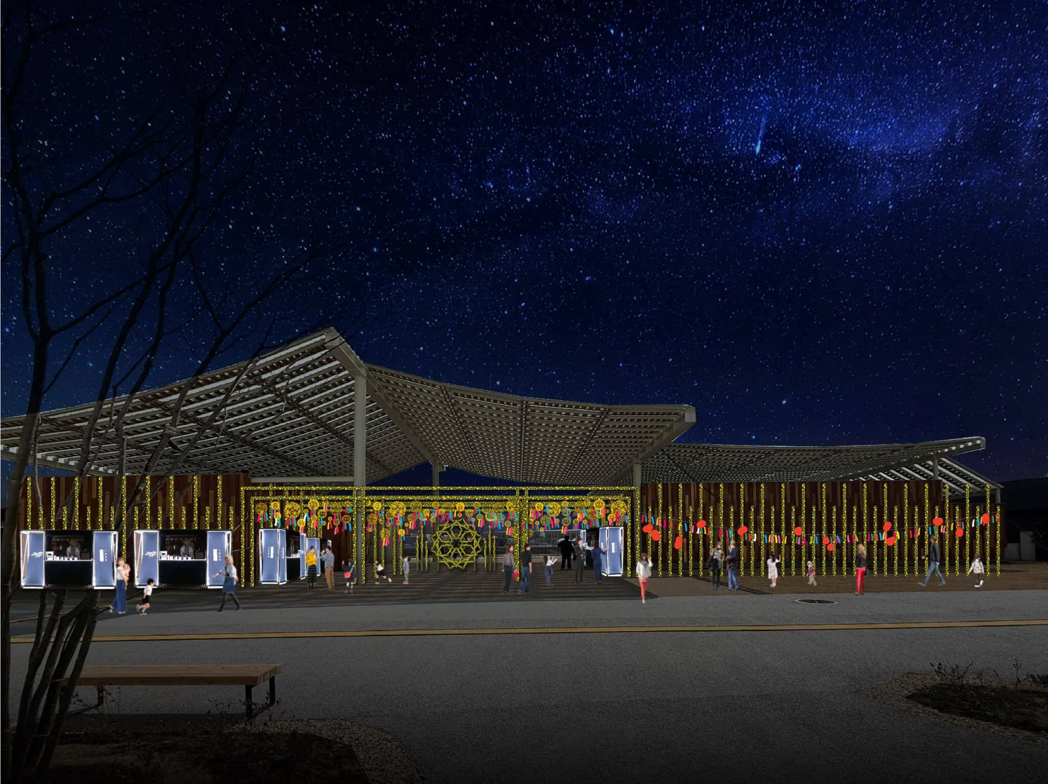 あなたの願いが、展示の一部となり、竹あかりに照らされ、人工流れ星とともに空を流れる。