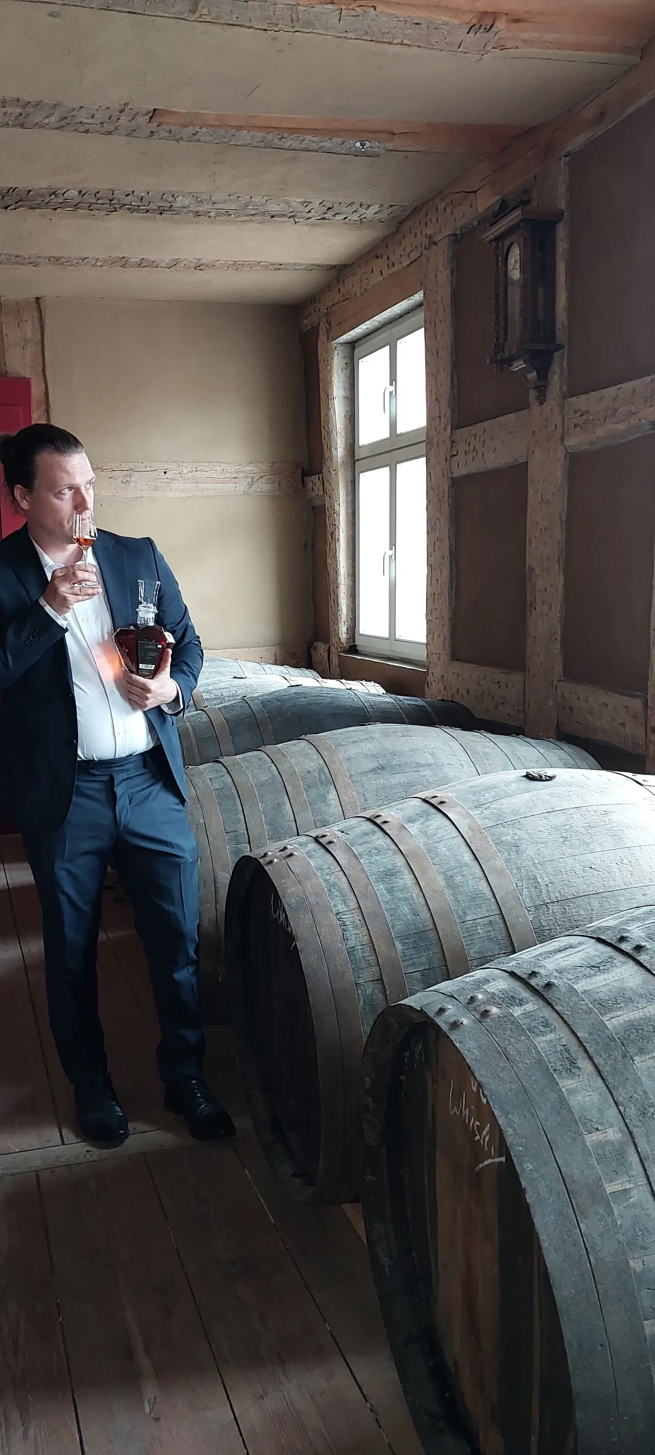 蒸溜されたばかりのニューポットは透明で、まだ香りも少ない。ウイスキーならではの芳醇な香りの80%ほどは樽熟成によりつくられる。味わいと共にウイスキーにおいて非常に重要な「香り」を左右する熟成樽に対しても非常にこだわりを持つエゲンシュタインでは、1つ1つじっくりと選び抜いた、自らを納得させた樽のみを使用している。