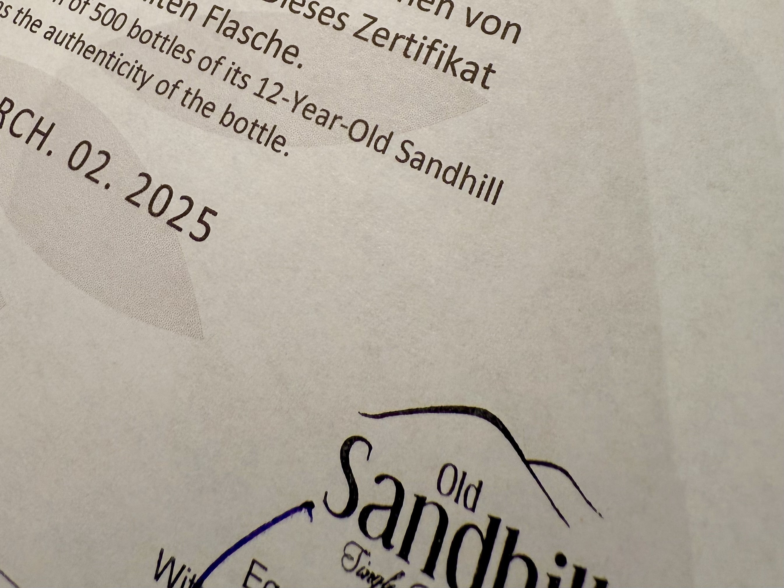 また、今回のリミテッドウイスキーのオールドサンドヒル/12Jahreには1本ずつ、蒸溜所から届いた証明書もつく予定です。
