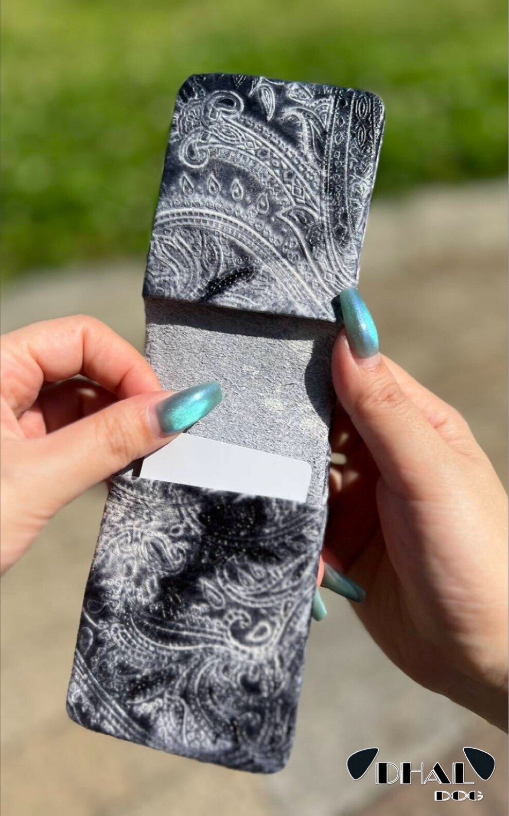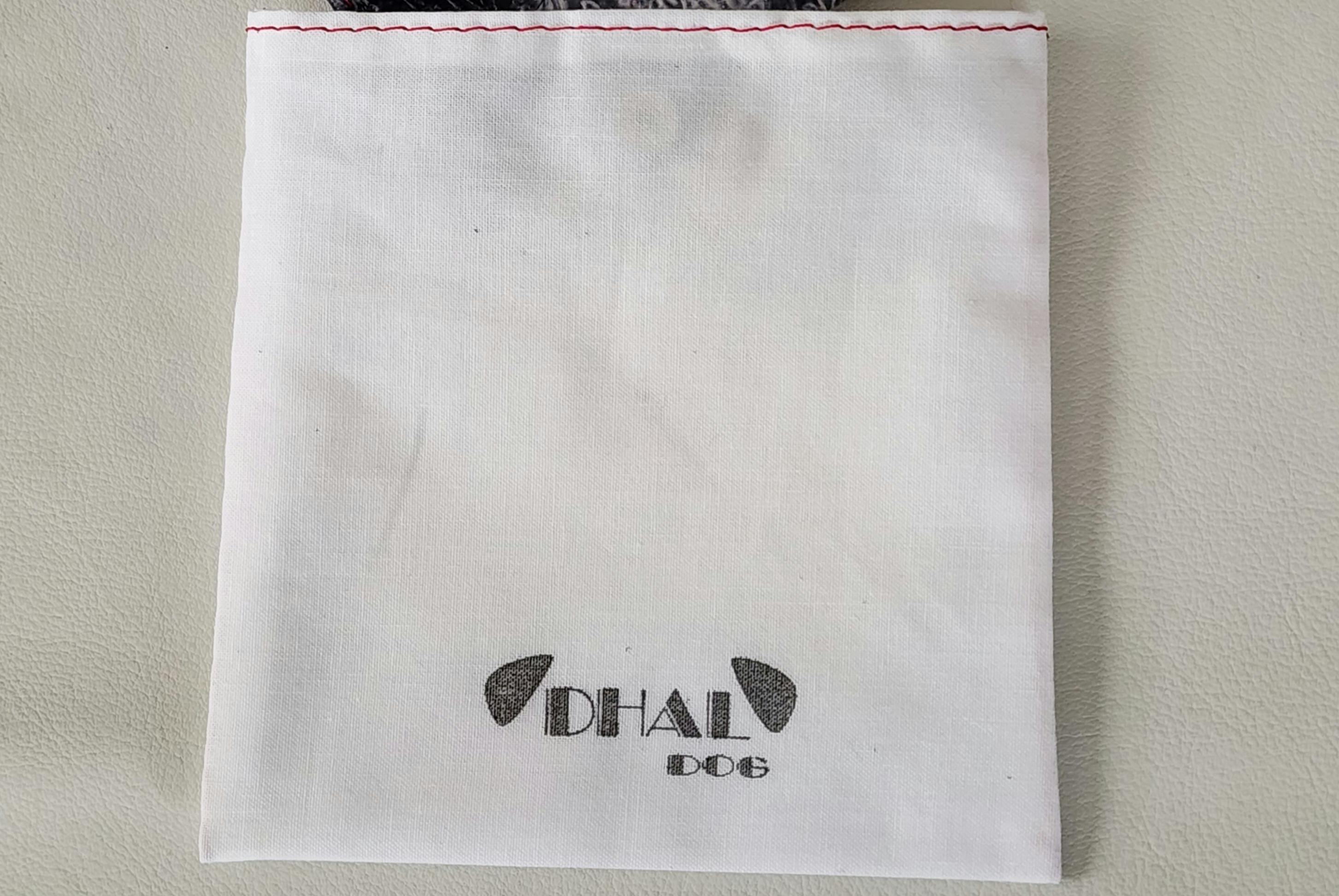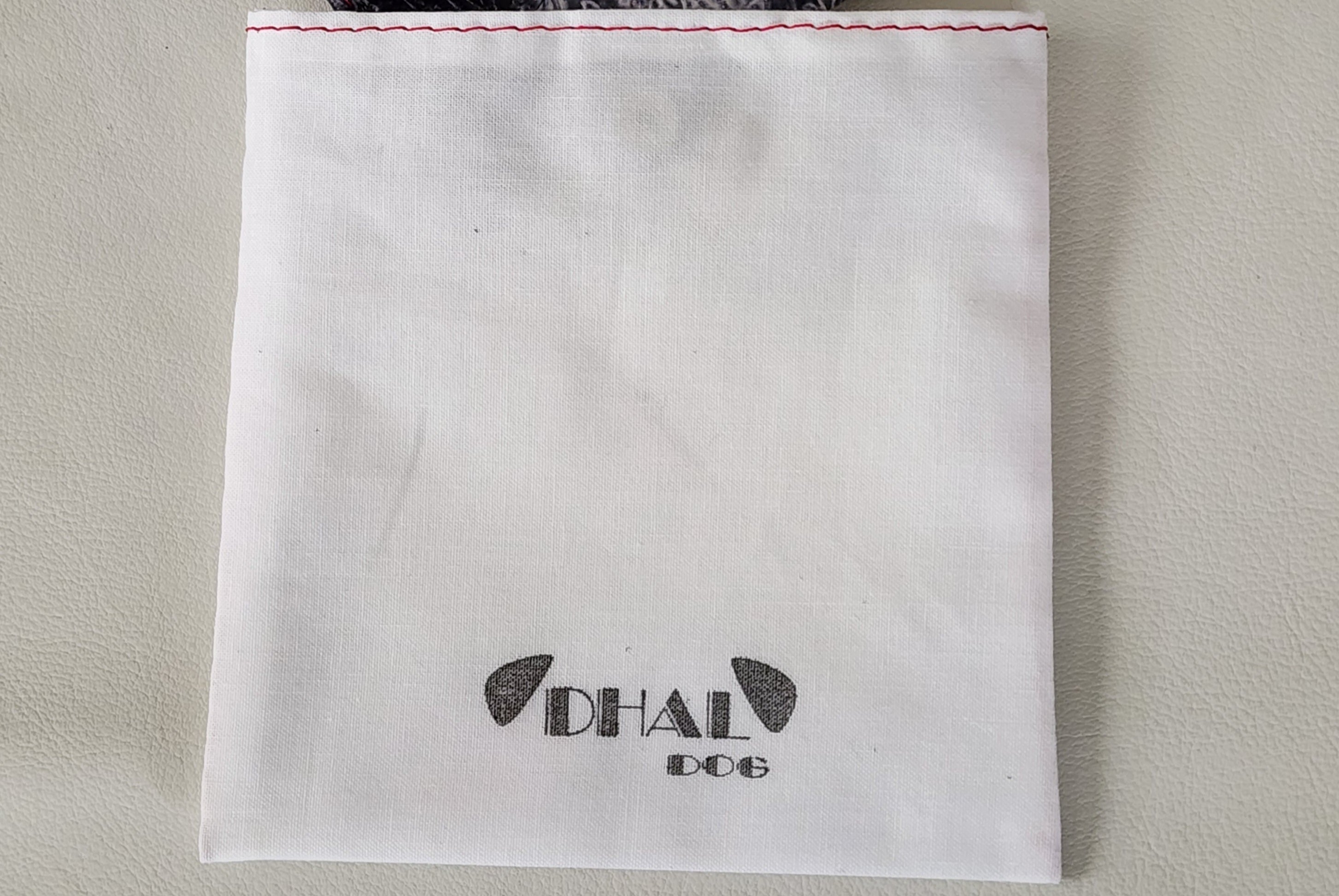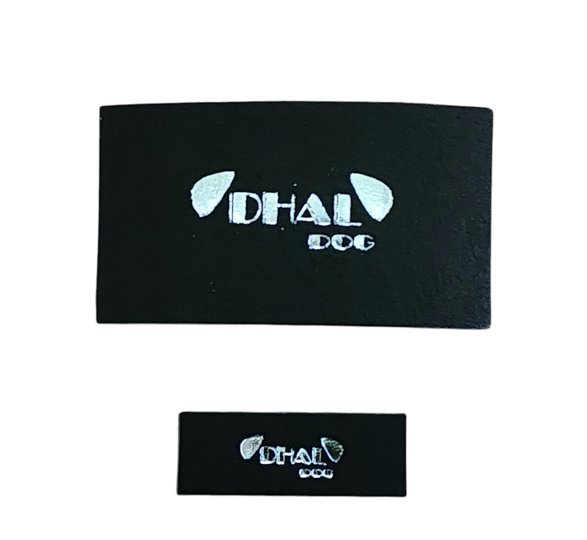 「DHAL.DOG」の商品には、すべて箔押しされたロゴタグがはいっております。