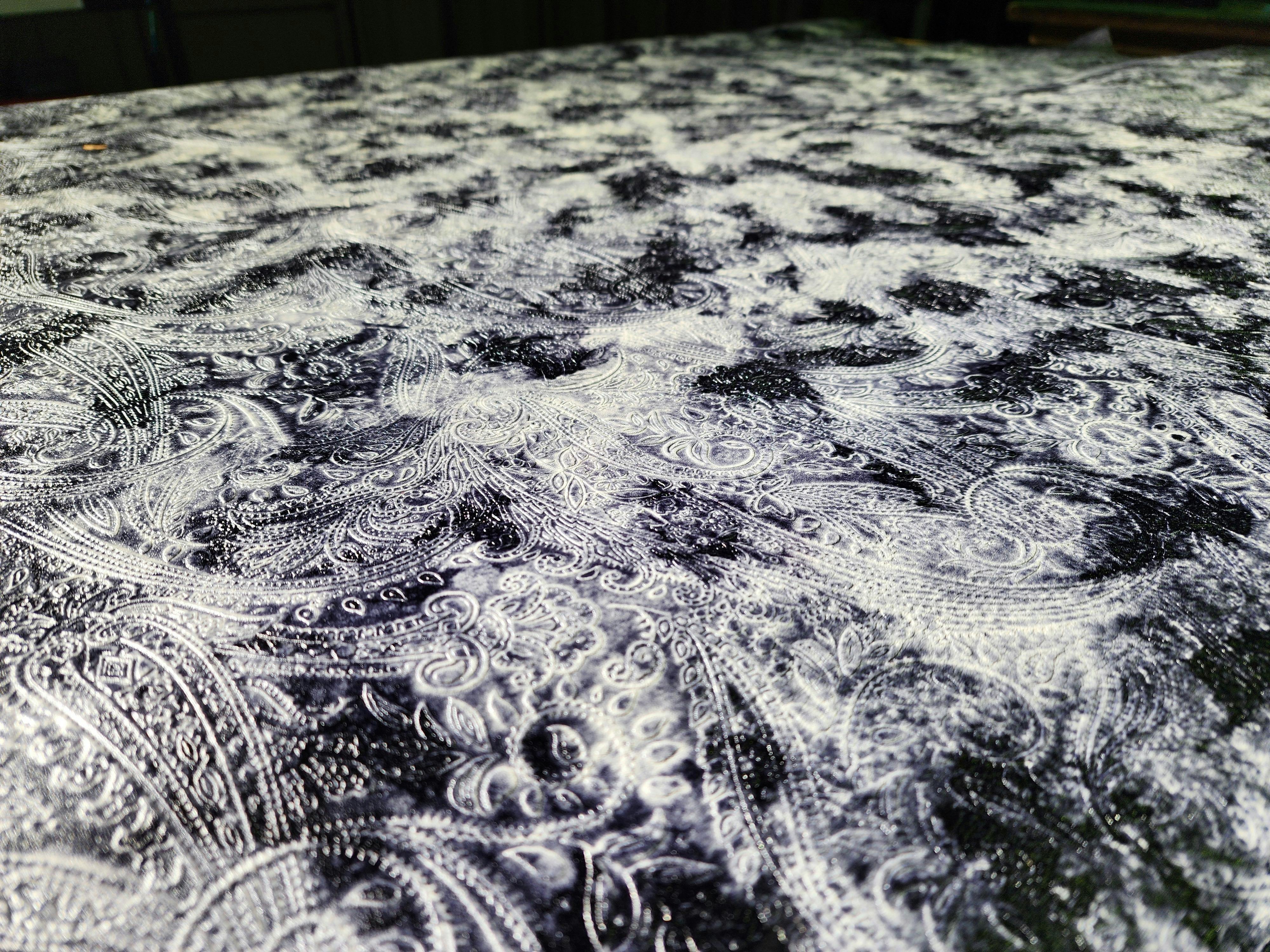・ペイズリー型を押した上から黒く塗料を吹きます。