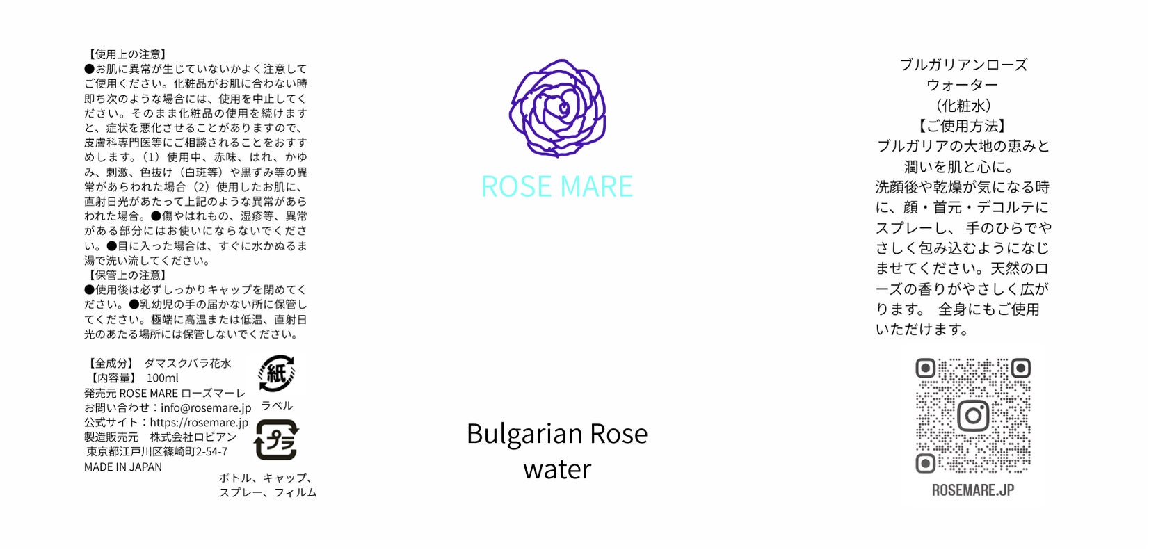 ブルガリアの大地の恵みの潤いを肌と心に。 洗顔後や乾燥が気になる時に、顔・首元・デコルテにスプレーし、 手のひらでやさしく包み込むようになじませてください。 全身にもご使用いただけます。