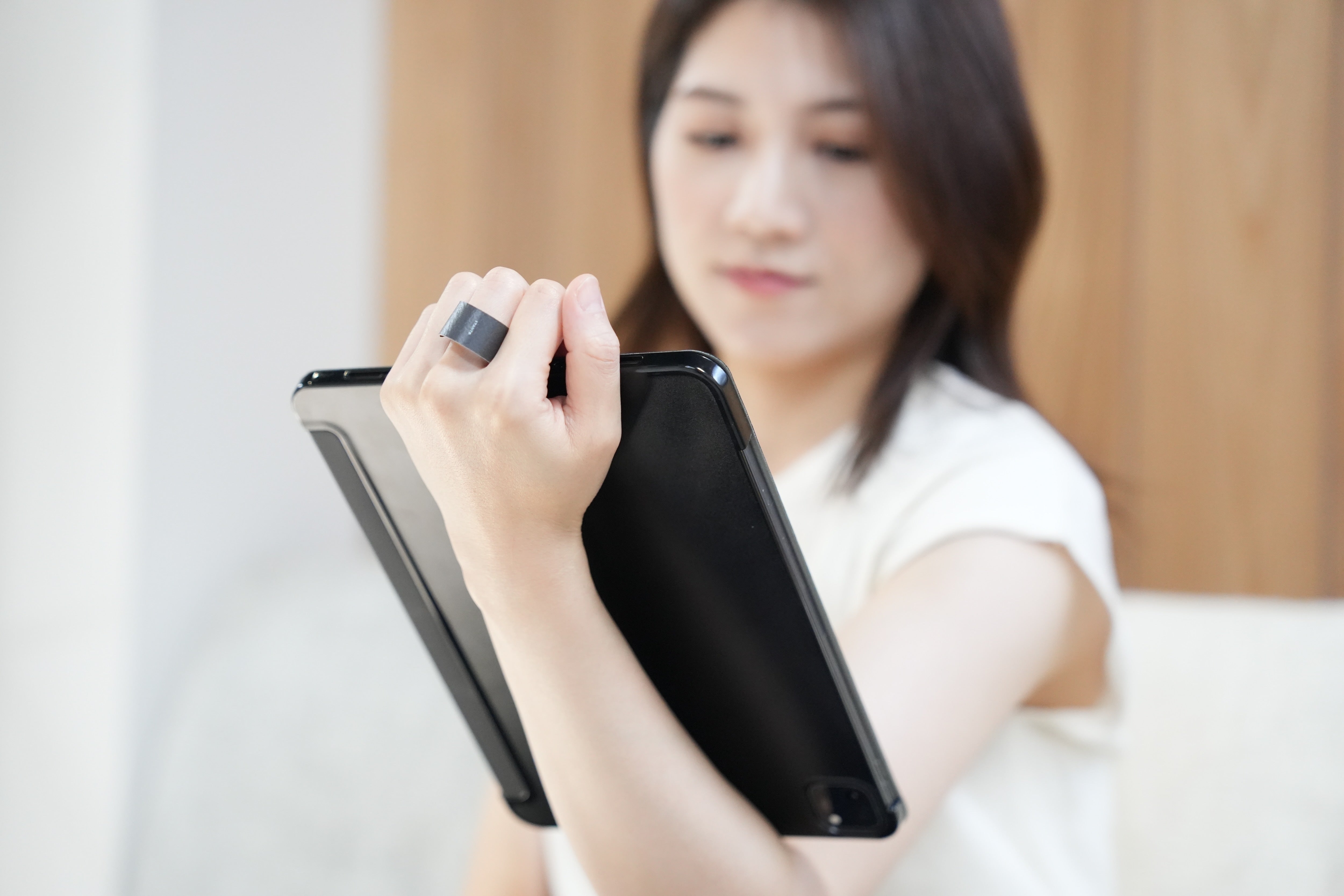 柔軟性の高い素材のリングが手に追従し、操作時に余分な力が入らなくなるため、負担を軽減します。
