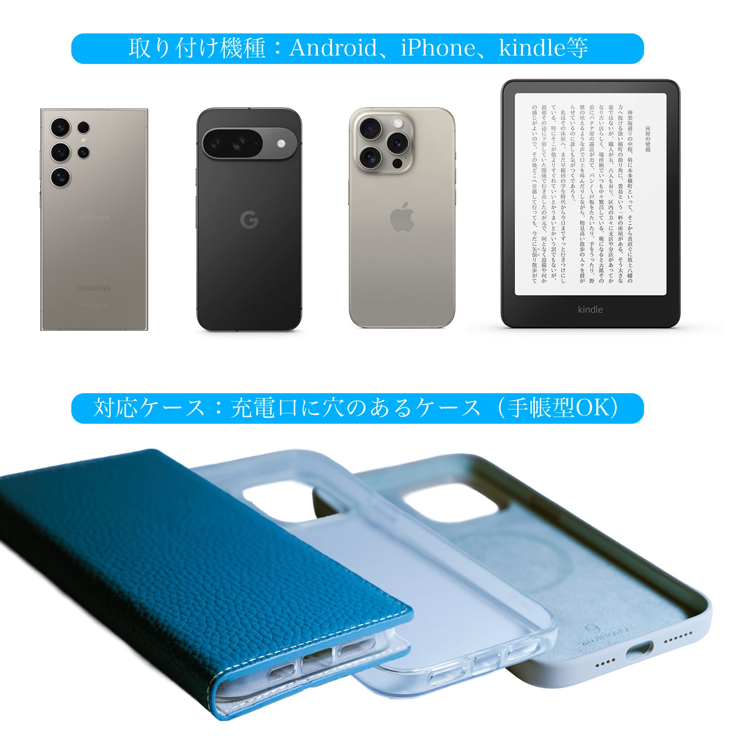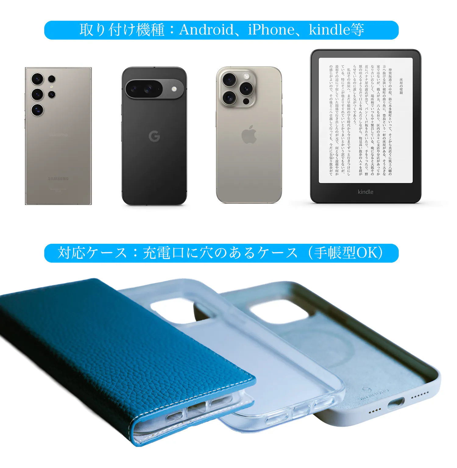 SYANTOはiPhone固有のMagSafe磁石等は不要なため、iPhone、Android、iPadで機種を選ばずにご利用いただけます。