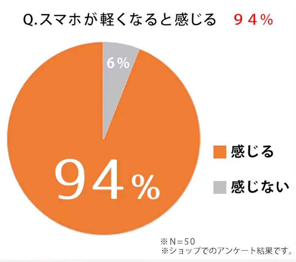 さらに、余計な力から手が解放されることで、スマホが軽く感じるという驚きの体験を、多くの方に体感いただいております。