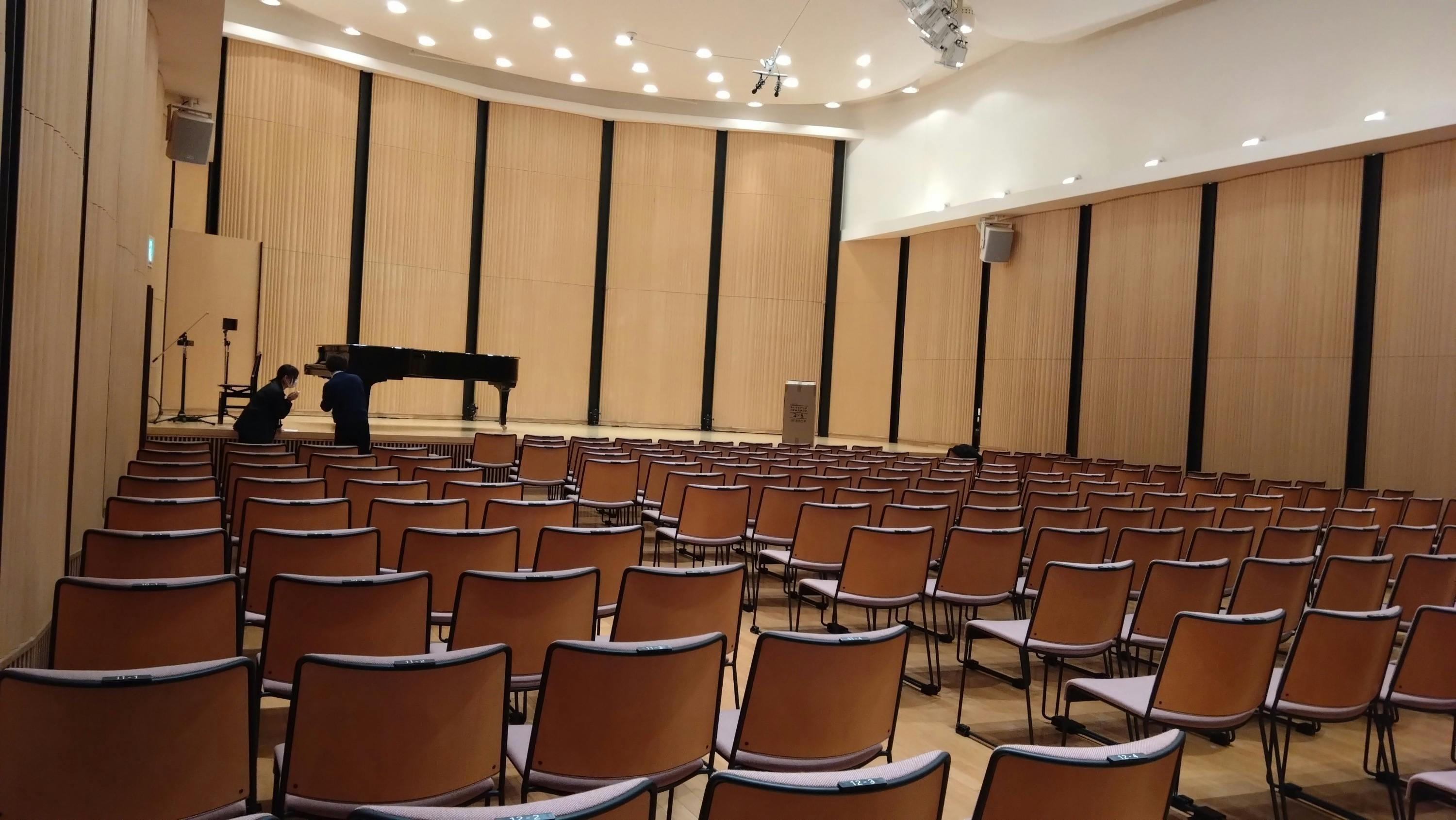 お借りする小ホールでの映像投影リハーサル、音響などの打合せを済ませ、