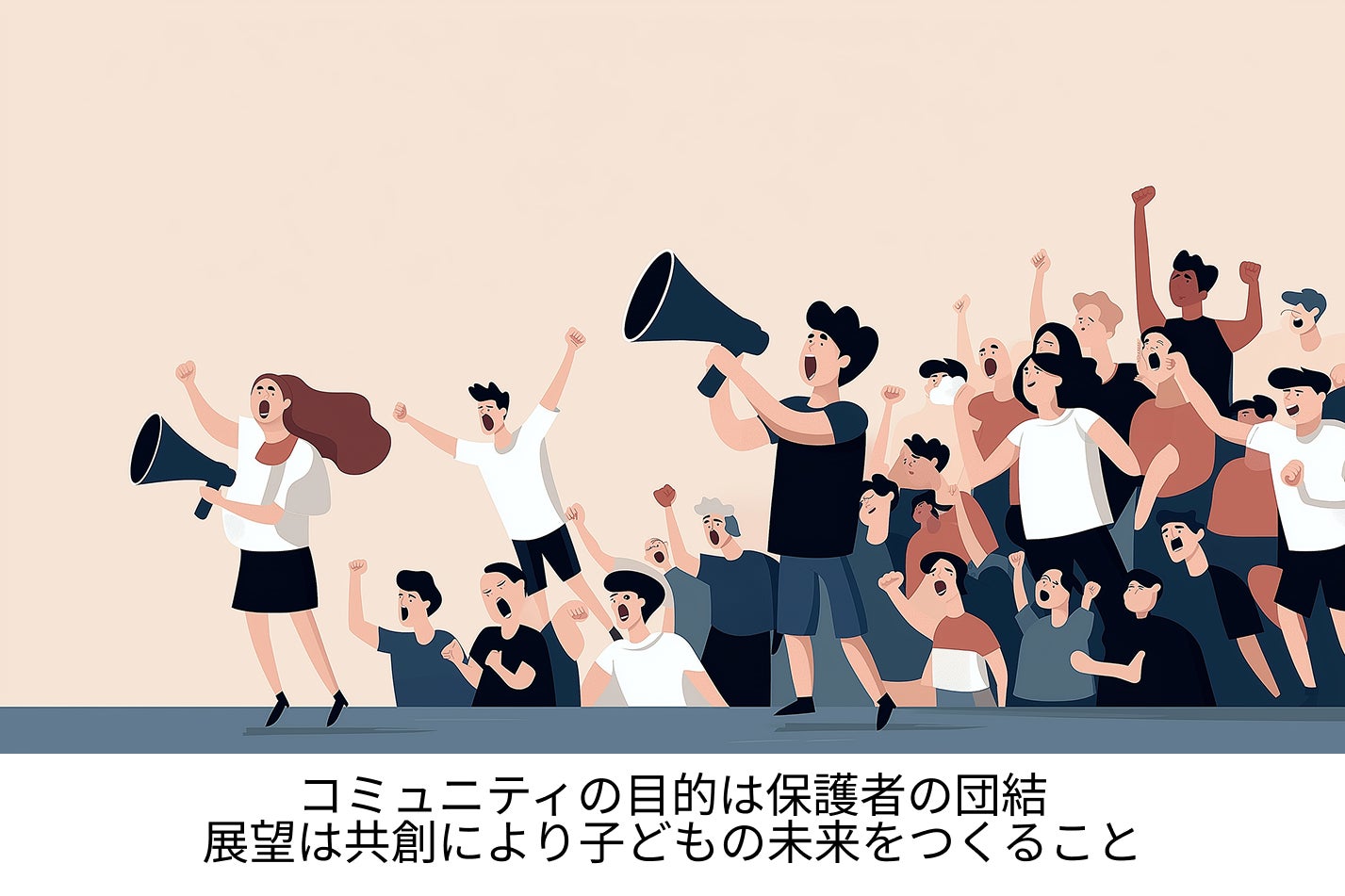 コミュニティの目的は、保護者の「団結」と「発言権」の強化です。