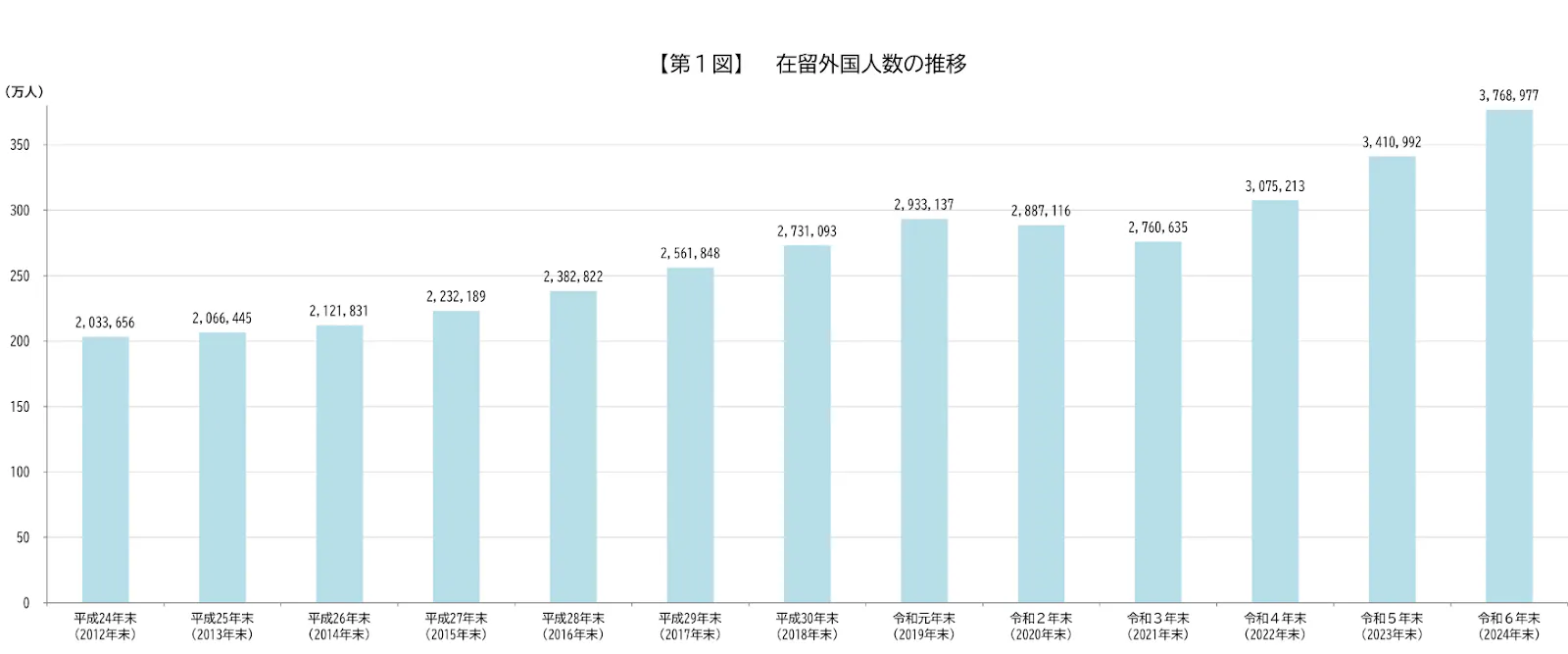 令和6年末の在留外国人数は、376万8,977人と過去最高を更新しています。