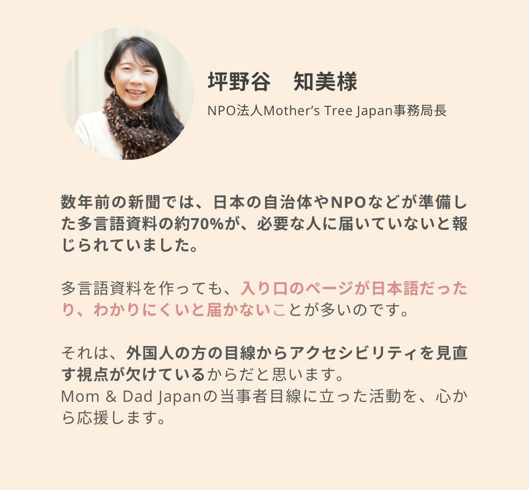 Mom & Dad Japanプロジェクト(以下MDJ)を応援いただきありがとうございます。