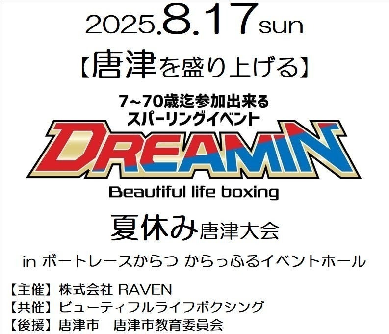 8月17日 唐津を盛り上げる!7~70歳迄参加出来るスパーリングイベント DREAMIN 開催