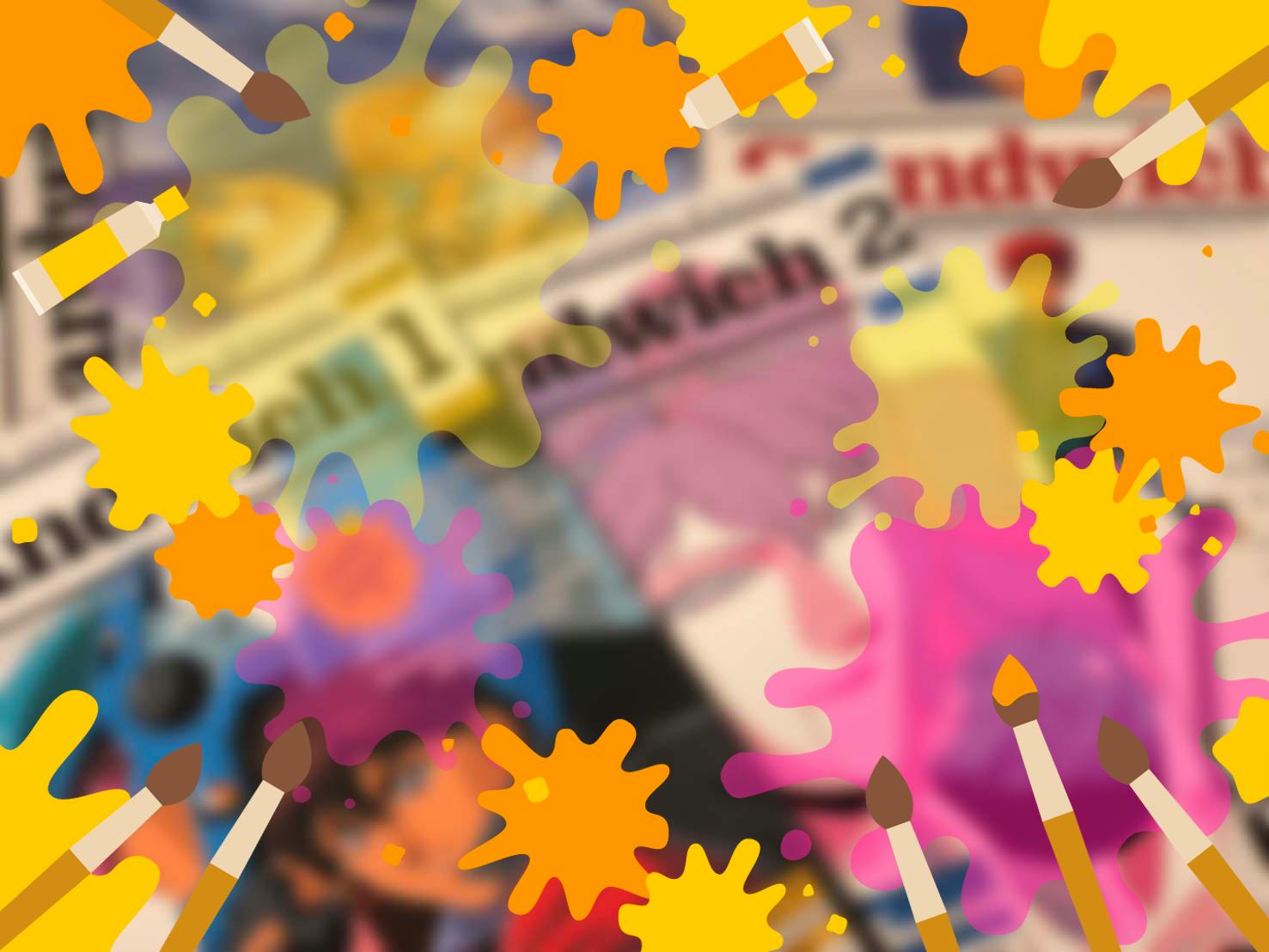 散らばった絵の具の奥にピンボケして見えるのは、