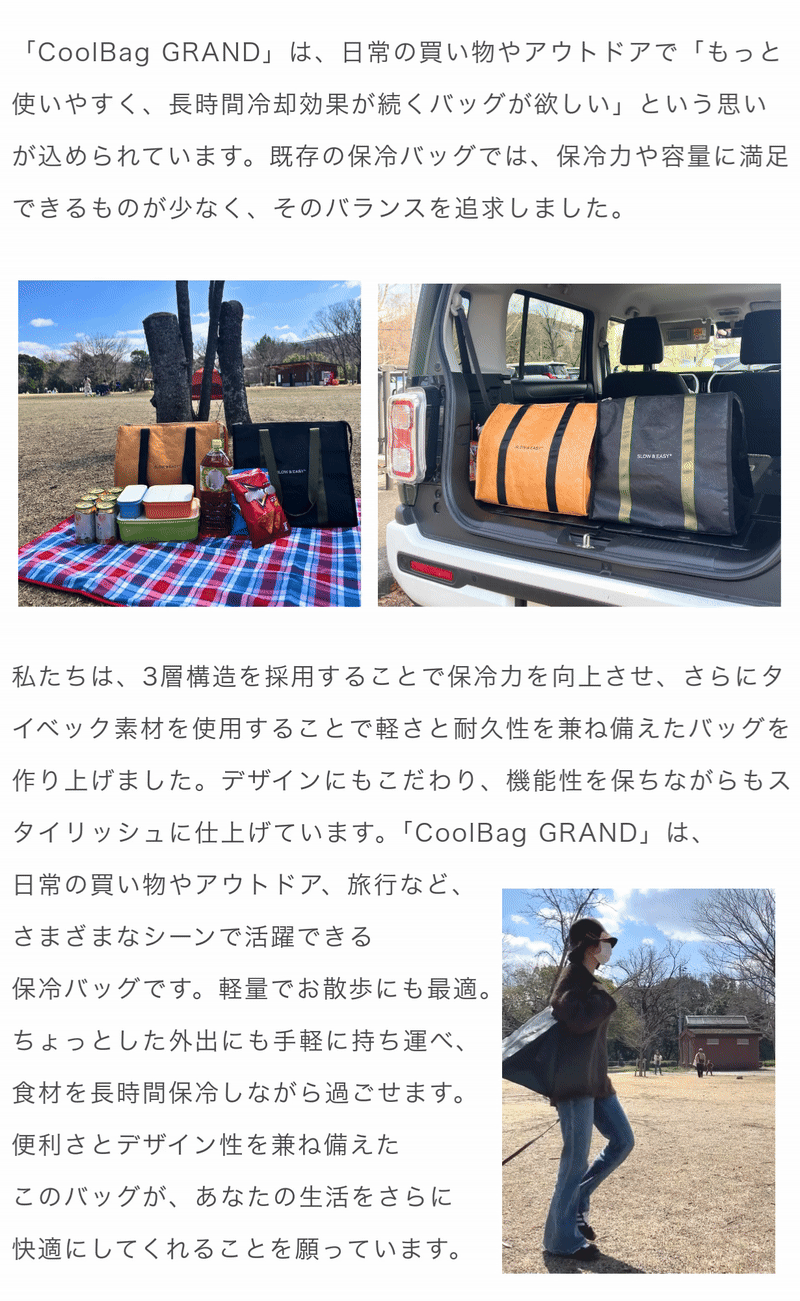2025/08/24 09:59ご支援いただいた皆様ありがとうございます。厳しい暑さが続いていますね。そんな季節にこそ、この保冷バッグがお役立ていただけると思います。現在、商品は発送準備に入っており、ご支援いただいた皆さまへ順次お届けできるよう進めています。そして本日がプロジェクト最終日!「気になっていたけど…」という方も、まだ間に合います。この夏を少しでも快適に過ごしていただけるよう、ぜひ最後にチェックしてください。最後までよろしくお願いします! もっと見る