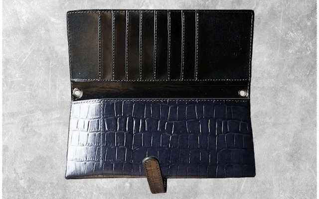 型押しクロコ/ブルー (内側 : 栃木レザー ブルーを使用)