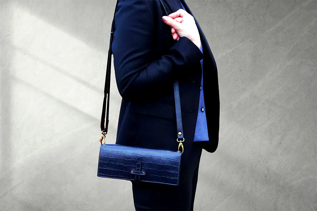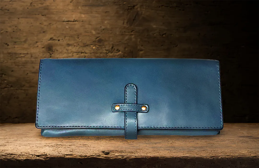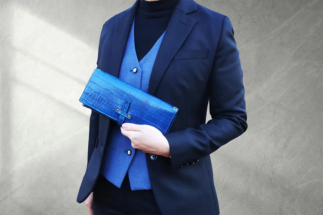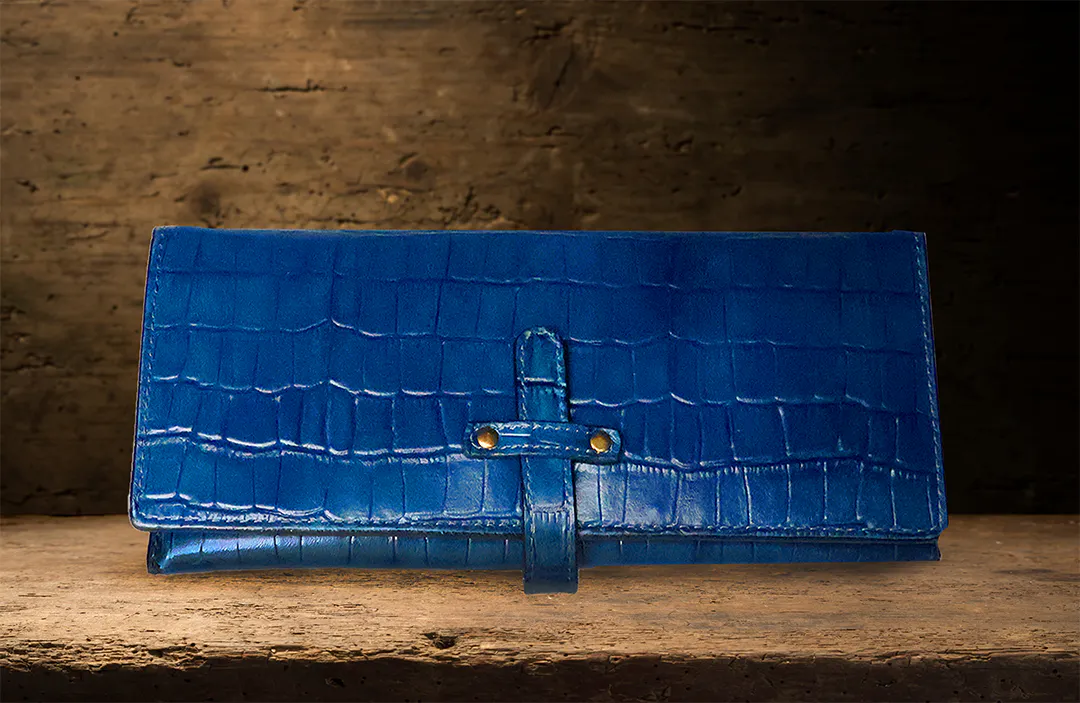 型押しクロコ/ブルー (内側 : 栃木レザー ブルーを使用)