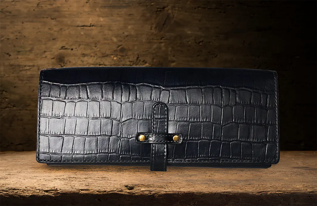 型押しクロコ/ブラック (内側 : 栃木レザー ブラックを使用)