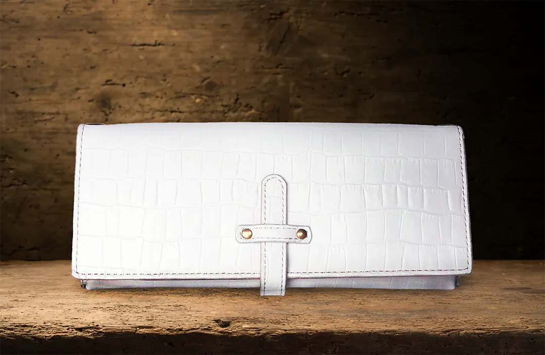 型押しクロコ / ホワイト (内側 : 栃木レザー レッドを使用)