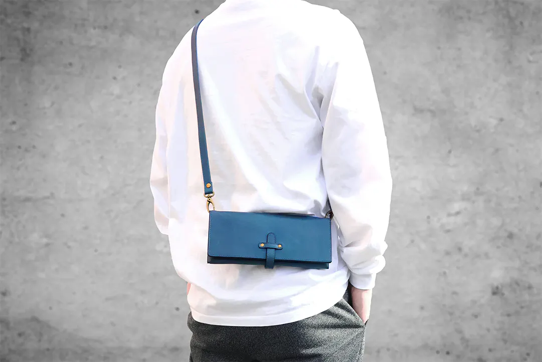 Next Walletには、着脱可能な栃木レザー製ショルダーベルトを標準セット。