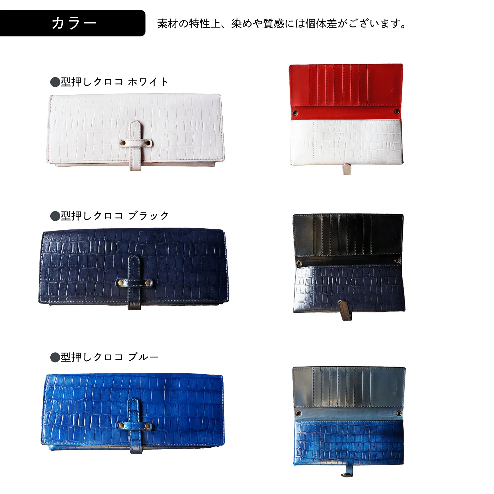 「型押しクロコ」の内側には栃木レザーを使用しています。