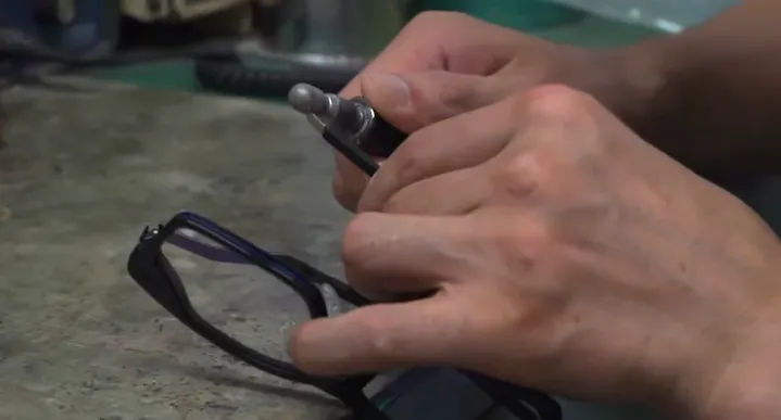テンプルを開閉しているうちにネジが緩むことがある丁番ネジ。