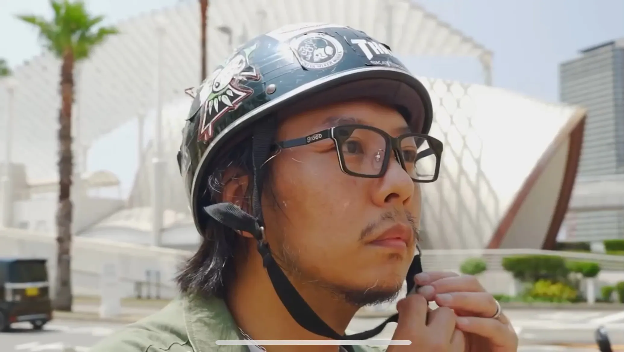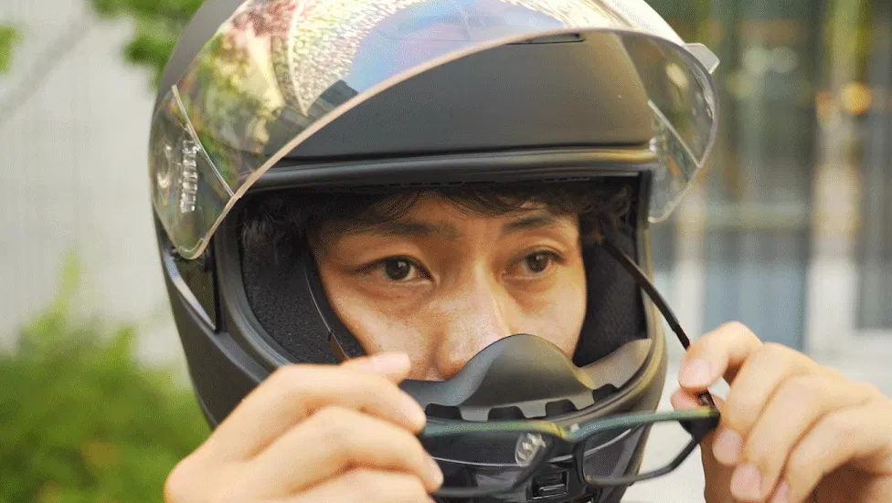 そしてこの細さがヘルメットを被った後にメガネを差し込みやすくなります。