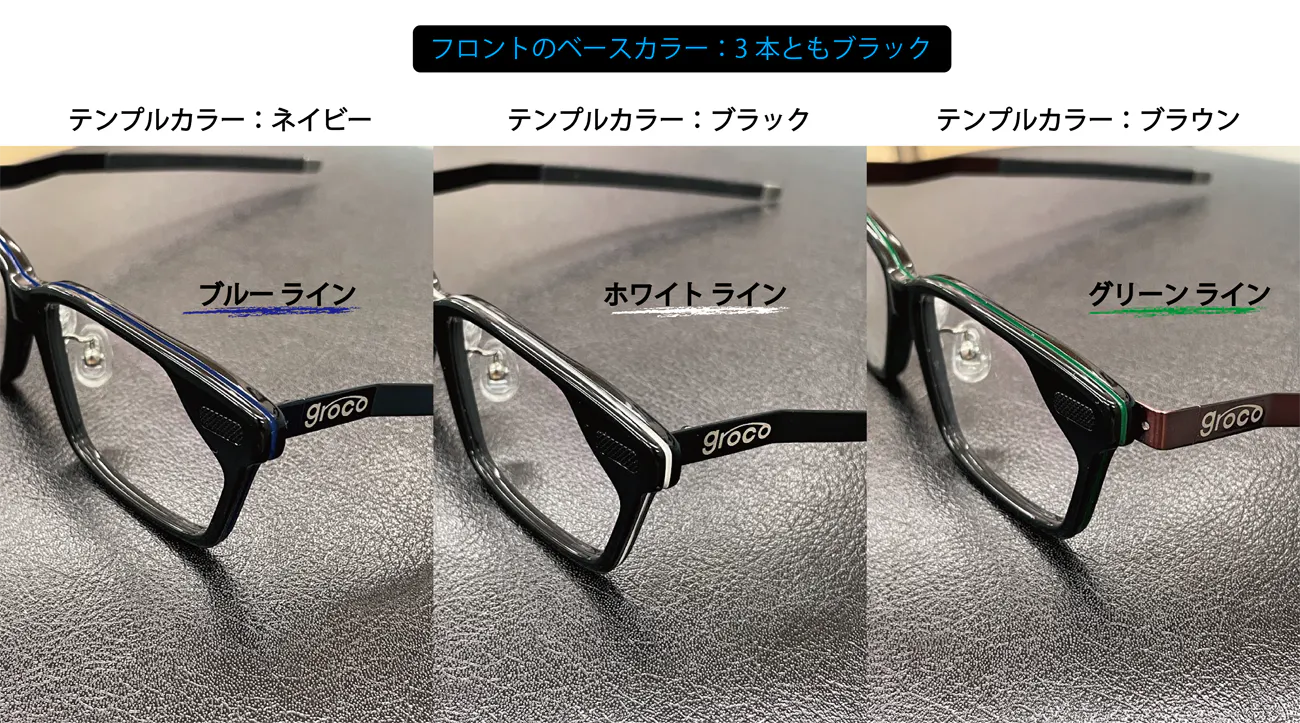 テンプルカラー:ネイビー・ブラック・ブラウン