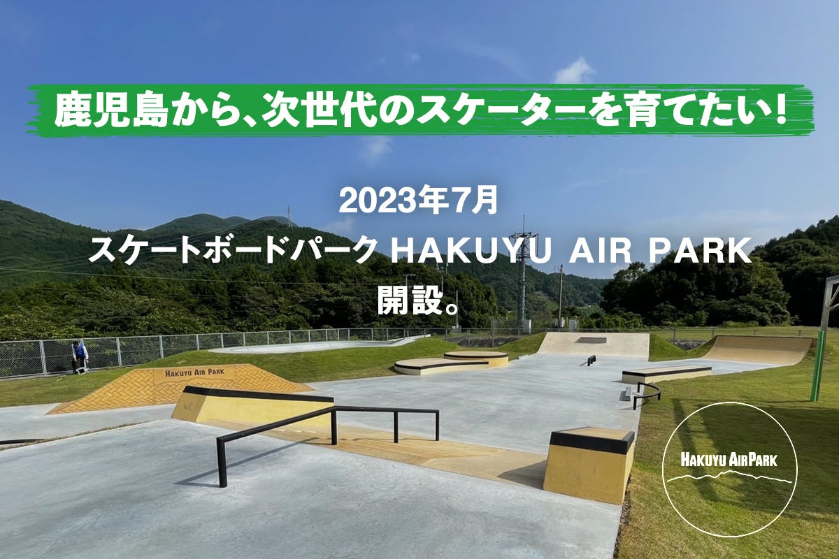 その一環として、2023年7月鹿児島県南さつま市金峰町にスケードボードパーク「HAKUYU AIR PARK(HAP) 」を開設しました。東京オリンピックコースを手掛けた専門業者による施工で、全国トップレベルの本格パークとして多くのスケーターや地域の子供たちに利用されてきました。