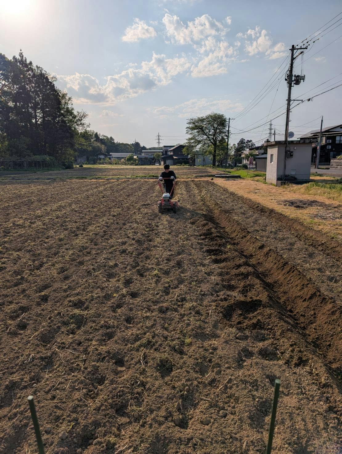 このときに撮影した写真をクラウドファンディングのトップ画像として使用しています。その後も耕うん後の畑で畝づくりを行い、活動の基盤を整えました。