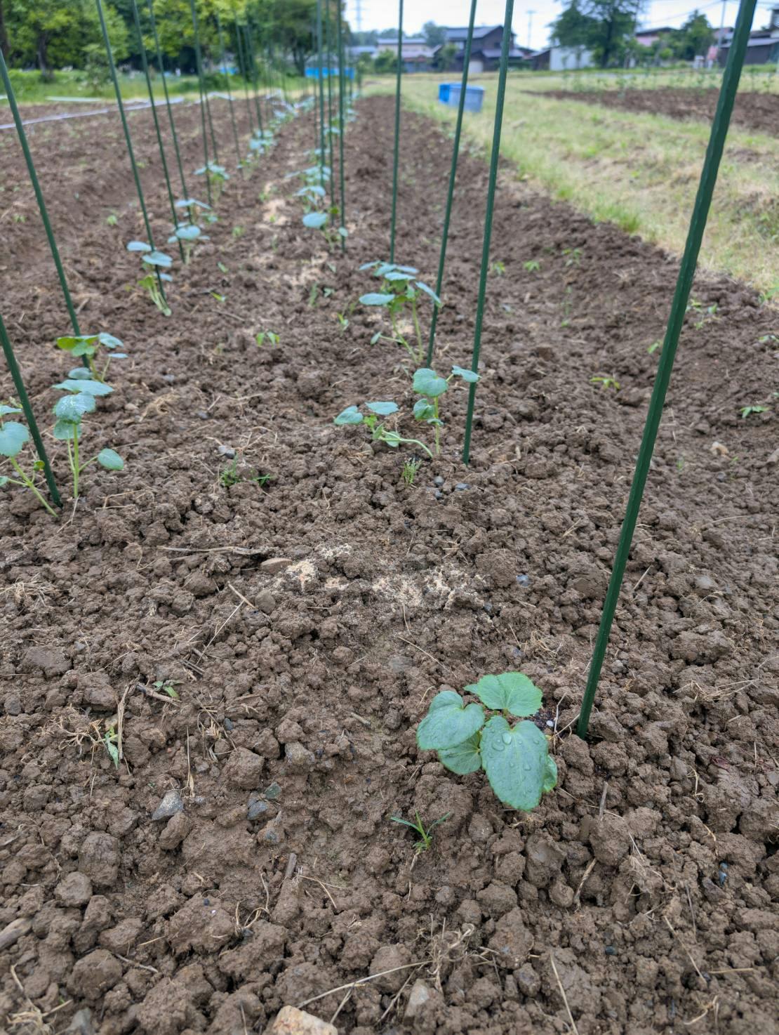 頸城オクラはまだ成長途中のため、本来の植え付けサイズには達していませんが、一部を先行して植え、様子を見ることにしました。