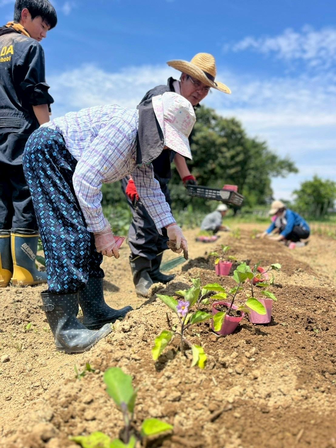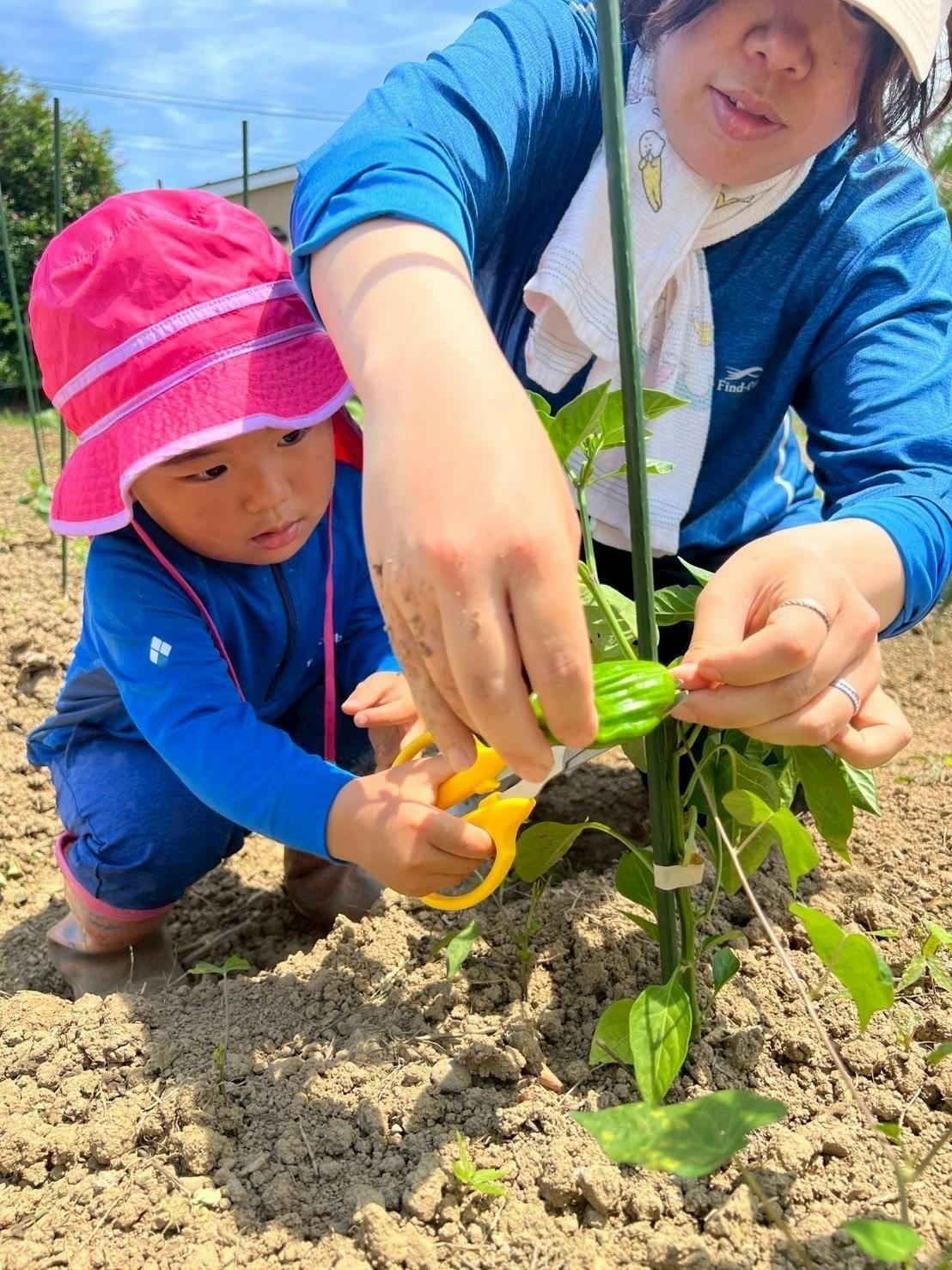 まだナスとピーマンしか収穫できませんが、楽しく農作業!!