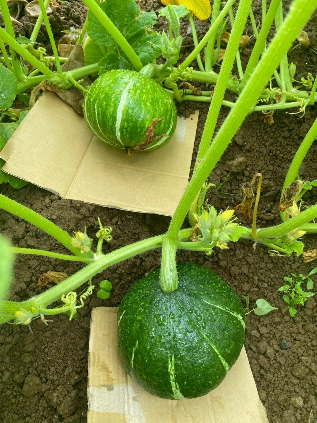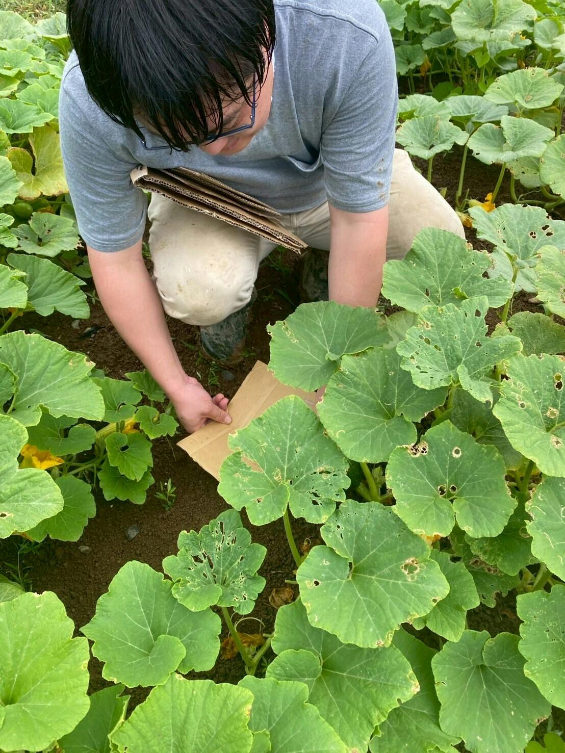 また、かぼちゃが大きくなってきたので、段ボールを下に引きました。