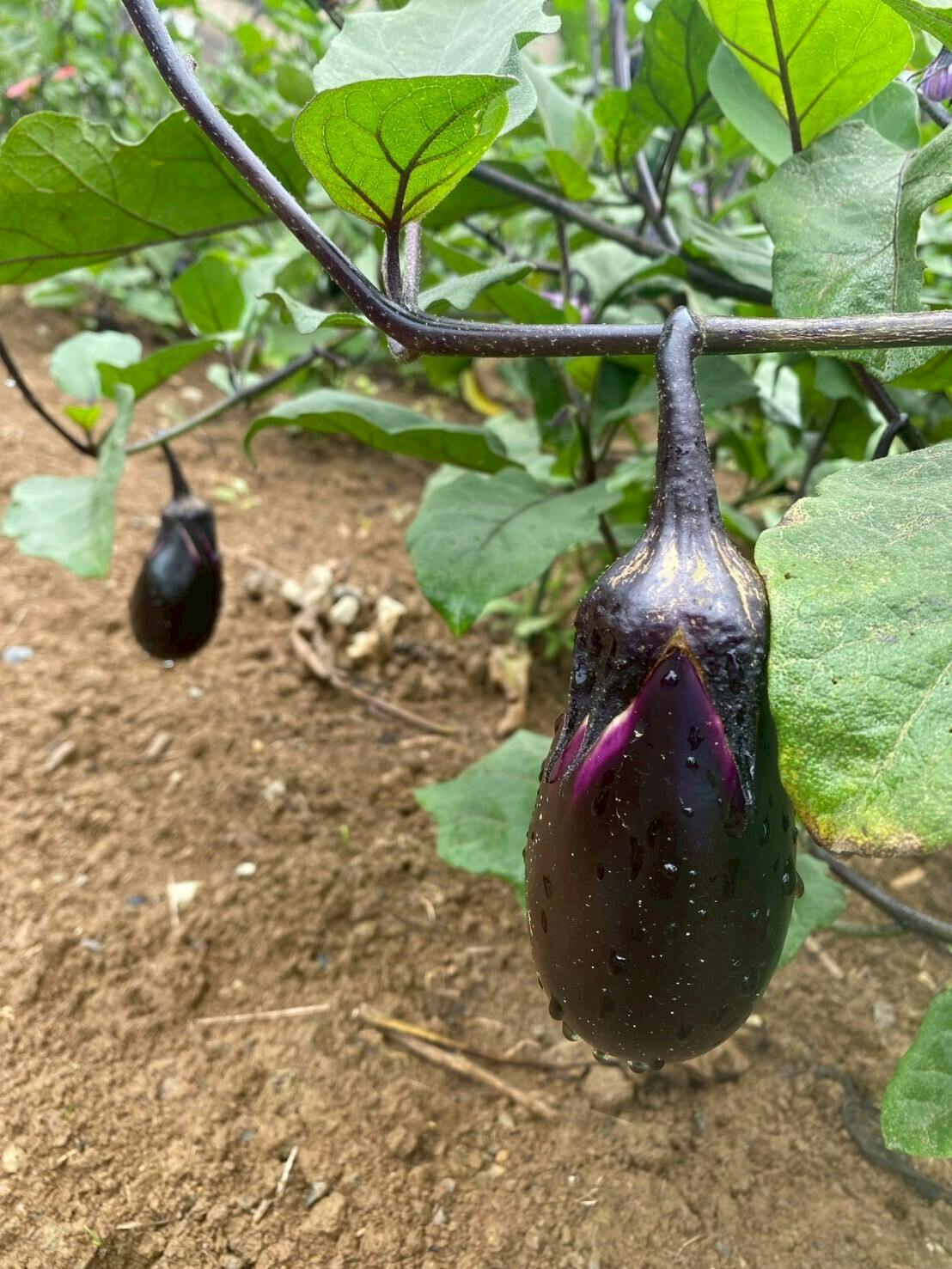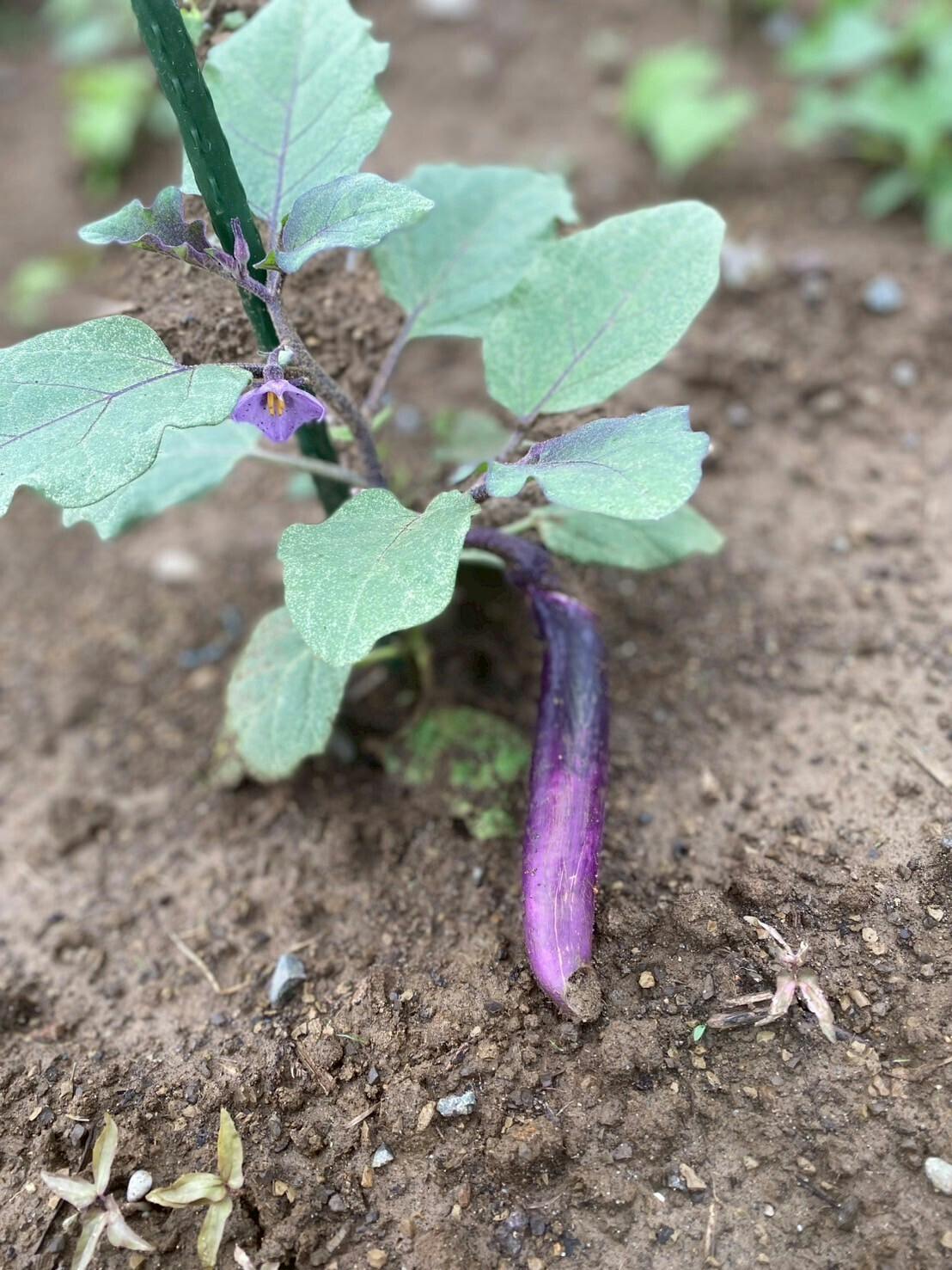 7月17日に種から苗を育て、畑に植えた「麻婆豆腐用のナス」という長いナスが育ってきました。