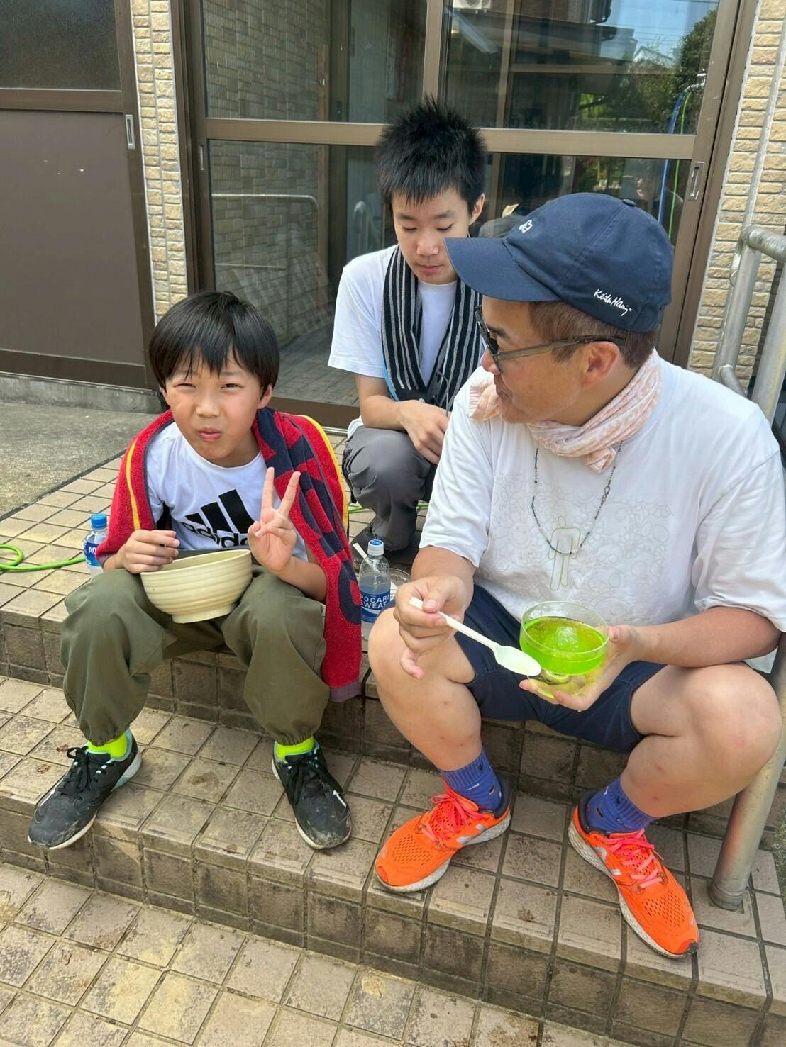 市村社長のお子さんが漬物の容器ごと持って行きむしゃむしゃ。ナスの漬物が美味しかったようです。