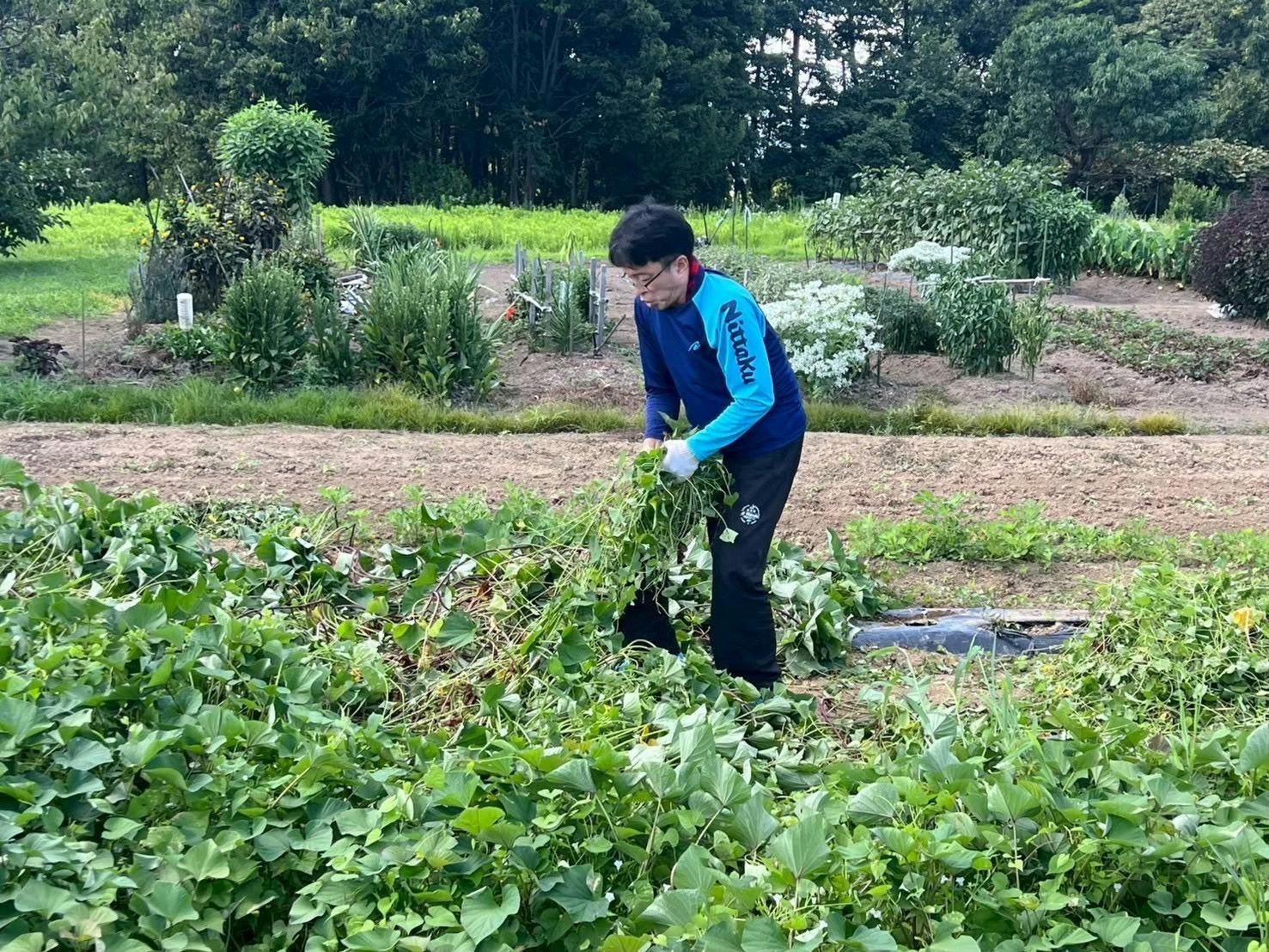 作業内容はいつもと同じく、野菜の収穫から行い、その後は草取りです。