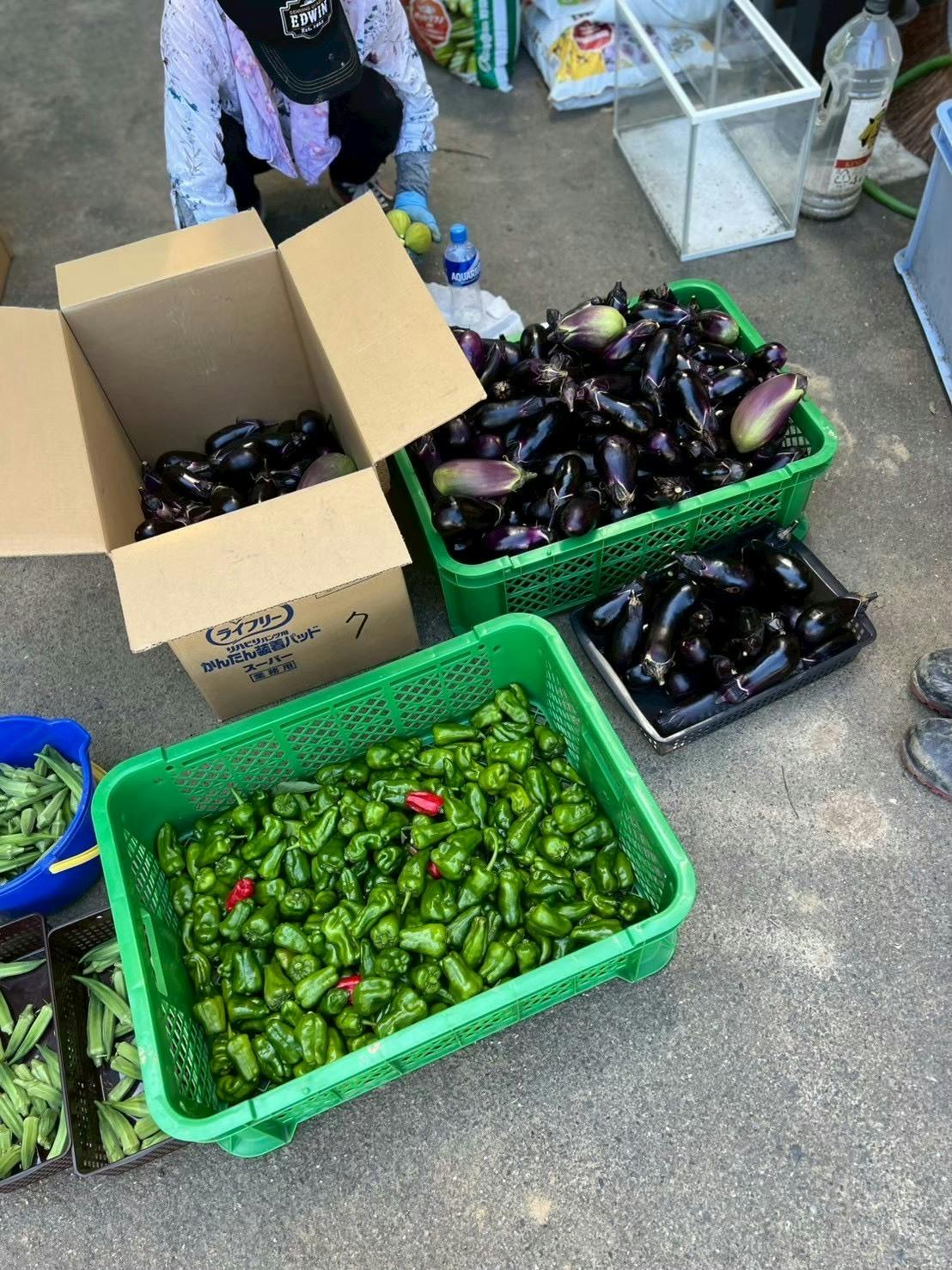今日も暑い中での作業でしたが、沢山の野菜が採れたのでみんなで山分けです。