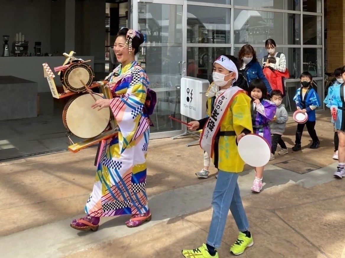 ワークショップや太宰府天満宮の参道パレードでは、ちんどん屋としての活動を体験し、表現力やコミュニケーション力を磨く機会を届けます。