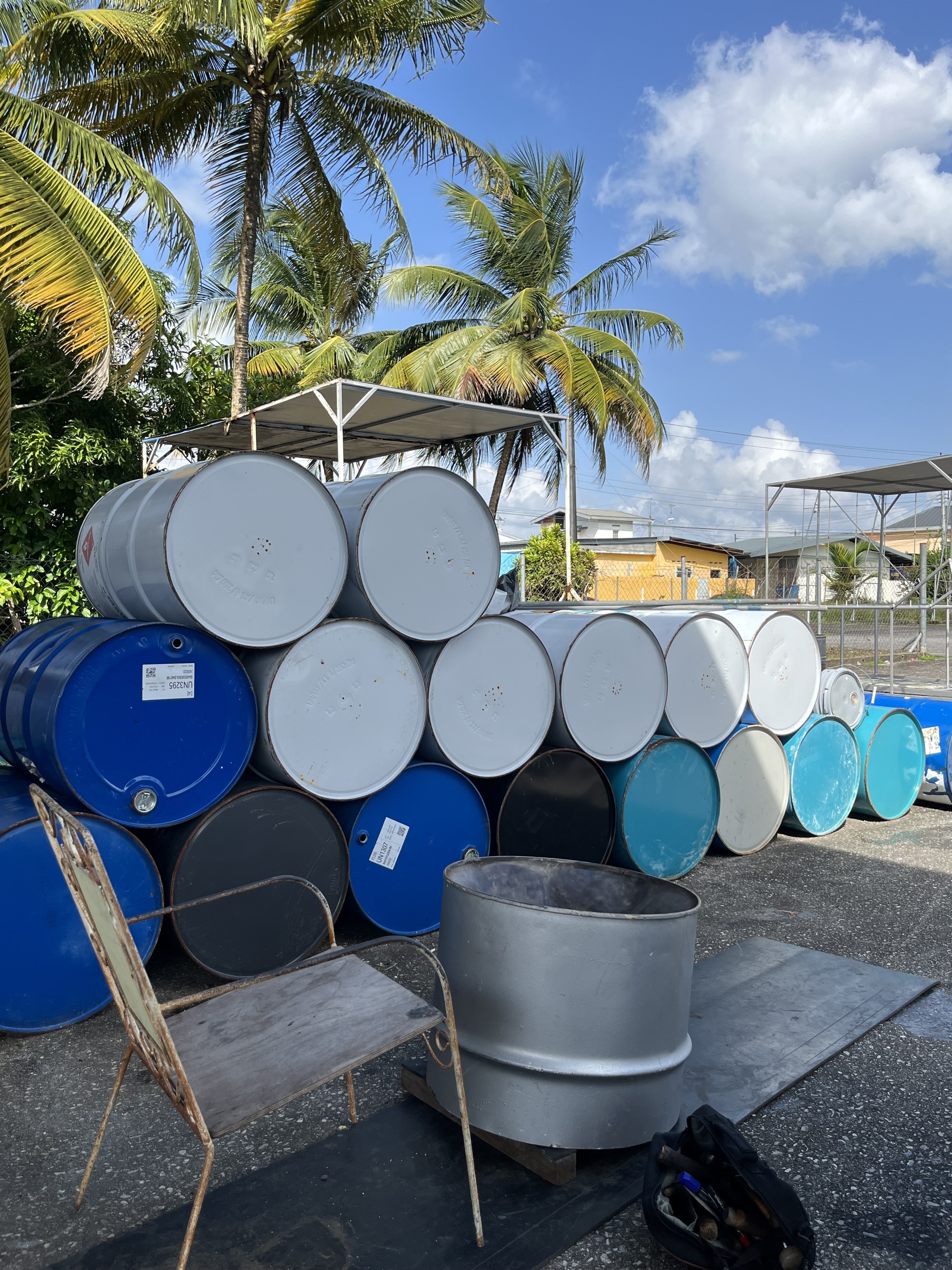 ≪トリニダードのPanyard スティールパンを作っている風景≫